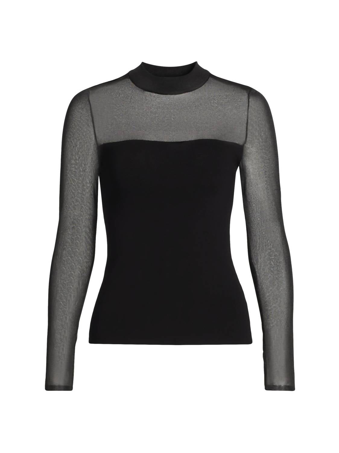 A versatile blouse that works from desk to dinner! Elevate your evening ensemble with the Winona Sheer Mockneck Top by Rails, a chic addition crafted for the modern woman. This sophisticated blouse features fitted long sleeves and a mock turtleneck, offered in a sleek black hue. Made from a luxe blend of 76% viscose and 24% nylon, it measures approximately 23 inches from shoulder to hem for an elegant fit. The top pulls over effortlessly and requires dry cleaning to maintain its refined appearance.