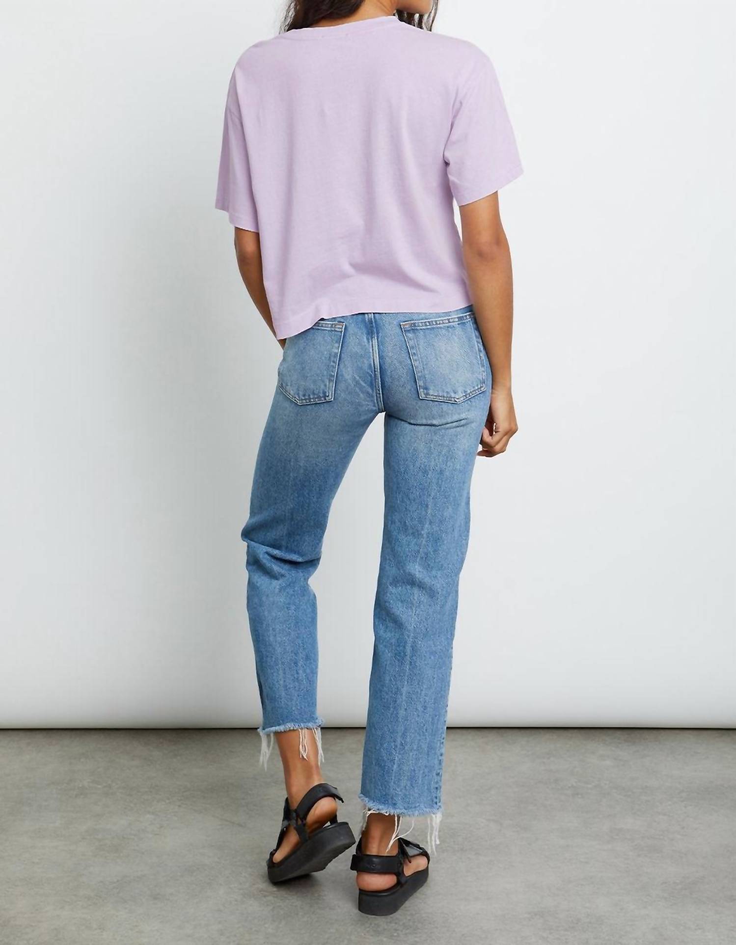 This classic, short sleeve tee will be your go-to staple this season and beyond.DETAILS |Sueded cotton jersey, short sleeve, dreamy lavender crew neck tee featuring boxy fit, relaxed round neckline, loose sleeves, and cropped length. Super soft and laidback, this tee is perfect for everyday wear.Imported.Machine Wash Cold Separate. Tumble Dry Low. Cool Iron If Necessary. Cannot Bleach Or Dry Clean.Recommend ordering true to size.Body Length: 21" .Model is wearing size S.Model’s Measurements: Height 5’10“, Bust 34", Waist 25", Hips 35".