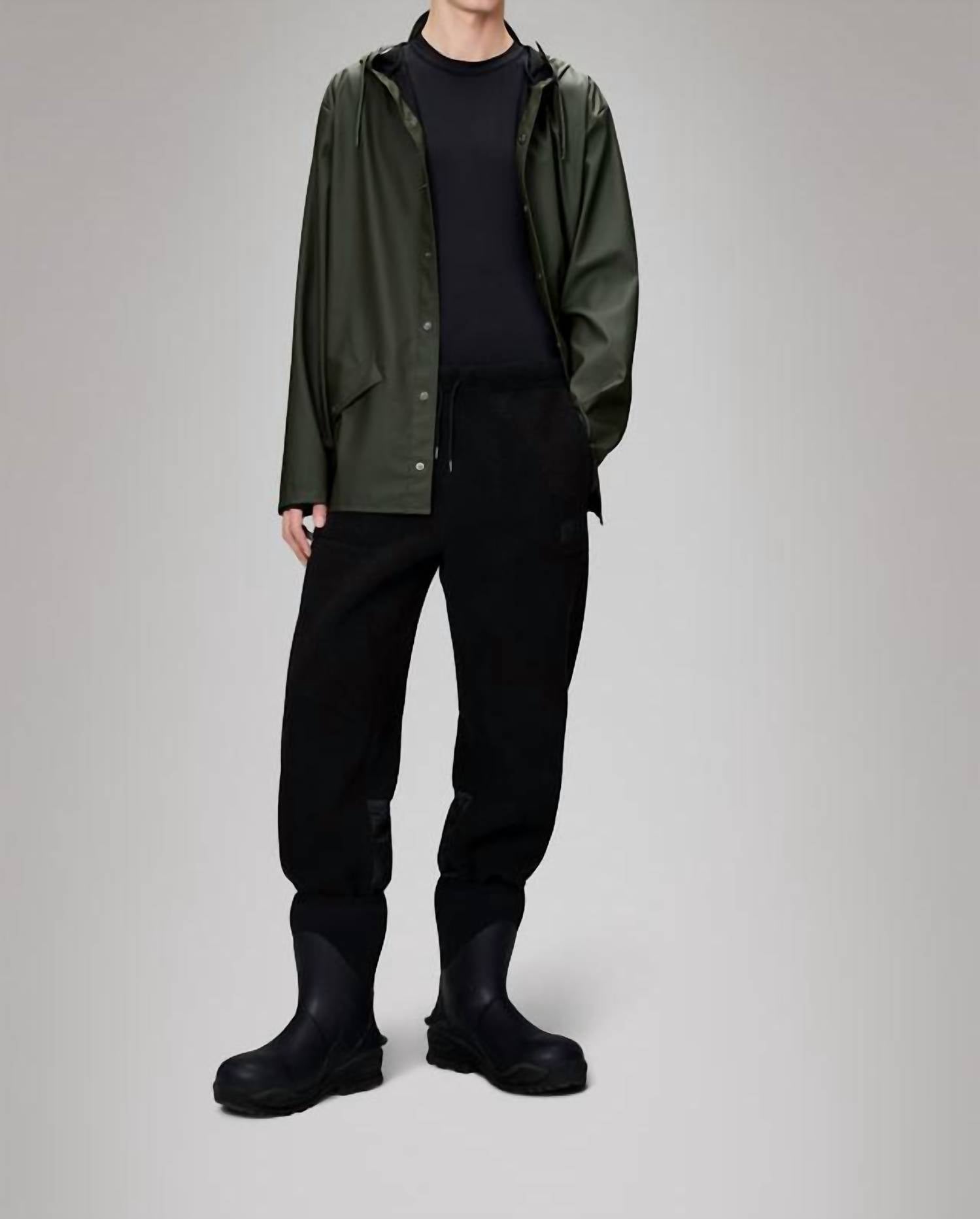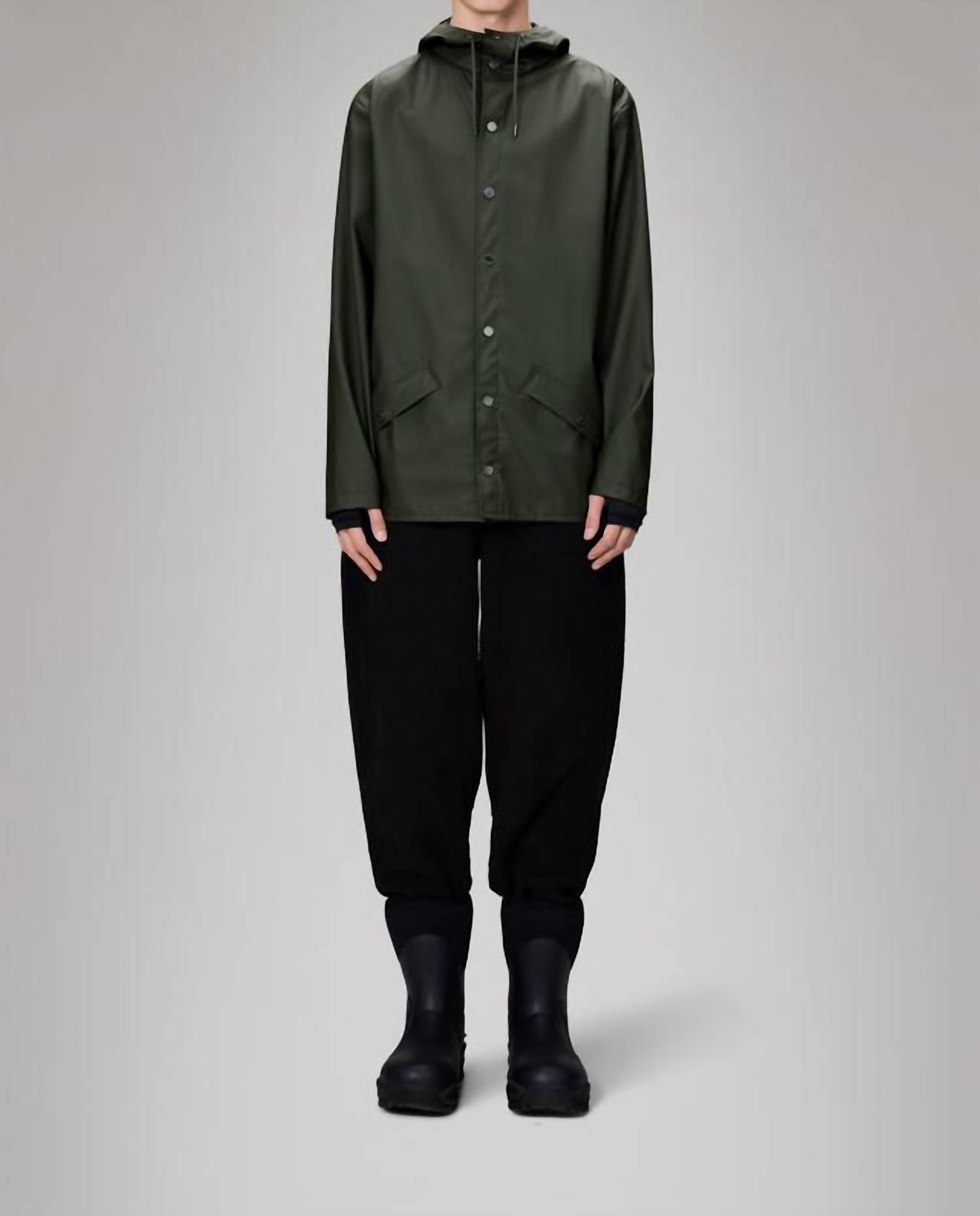 The Men's rain jacket, SKU 12010, is made of 100% polyester (PU fabric) weighing 470 grams, offering a lightweight, waterproof, and breathable design. It features a hood with a built-in cap and drawstring, a snap-fastened placket for closure, two snap-closure side pockets, and adjustable snap cuffs for a loose or tight fit. The jacket includes under-arm eyelets, a back yoke with concealed vents for breathability, welded seams for durability, and a fishtail hem. Its fit is regular, with a minimal silhouette and high functionality suitable for all genders.