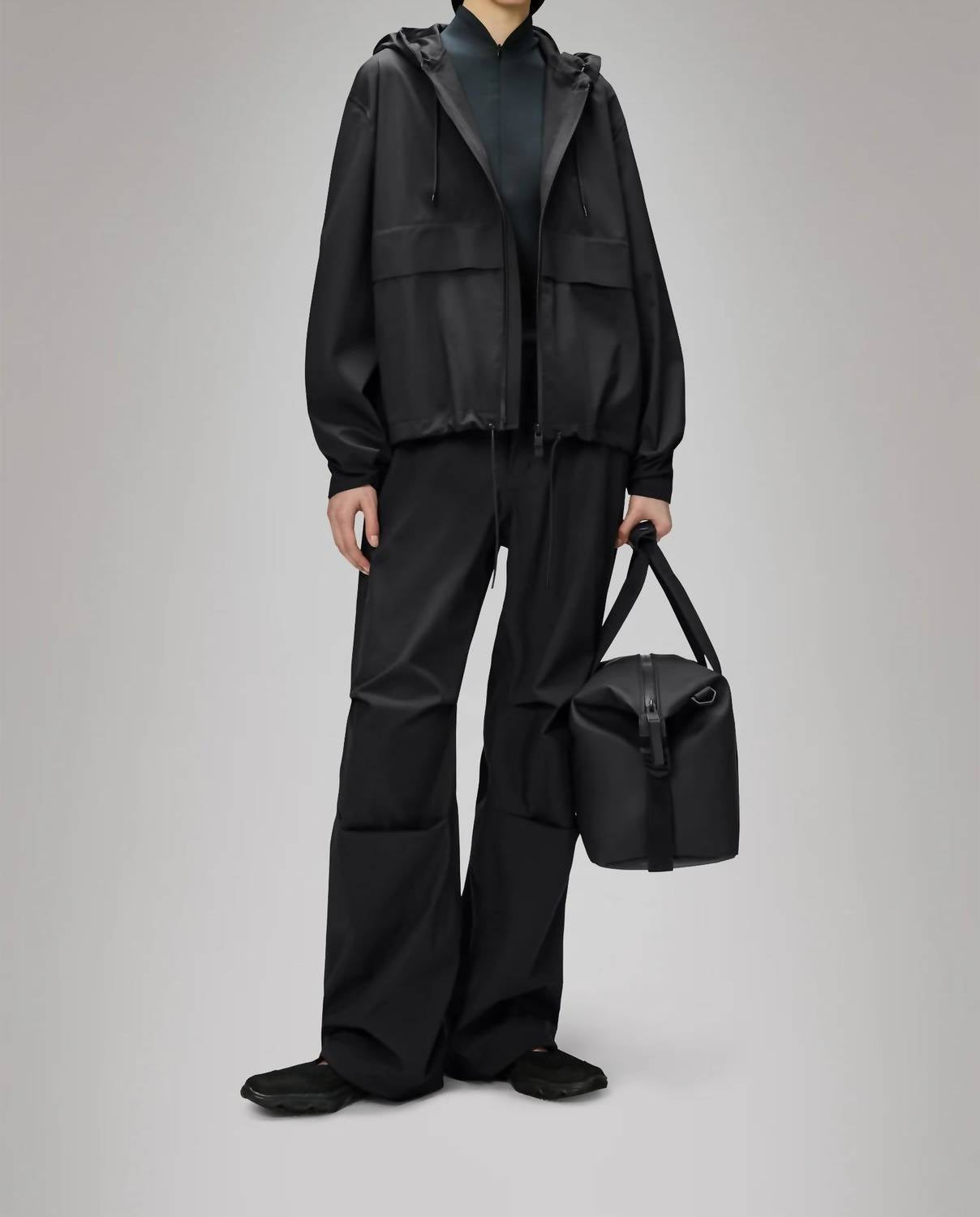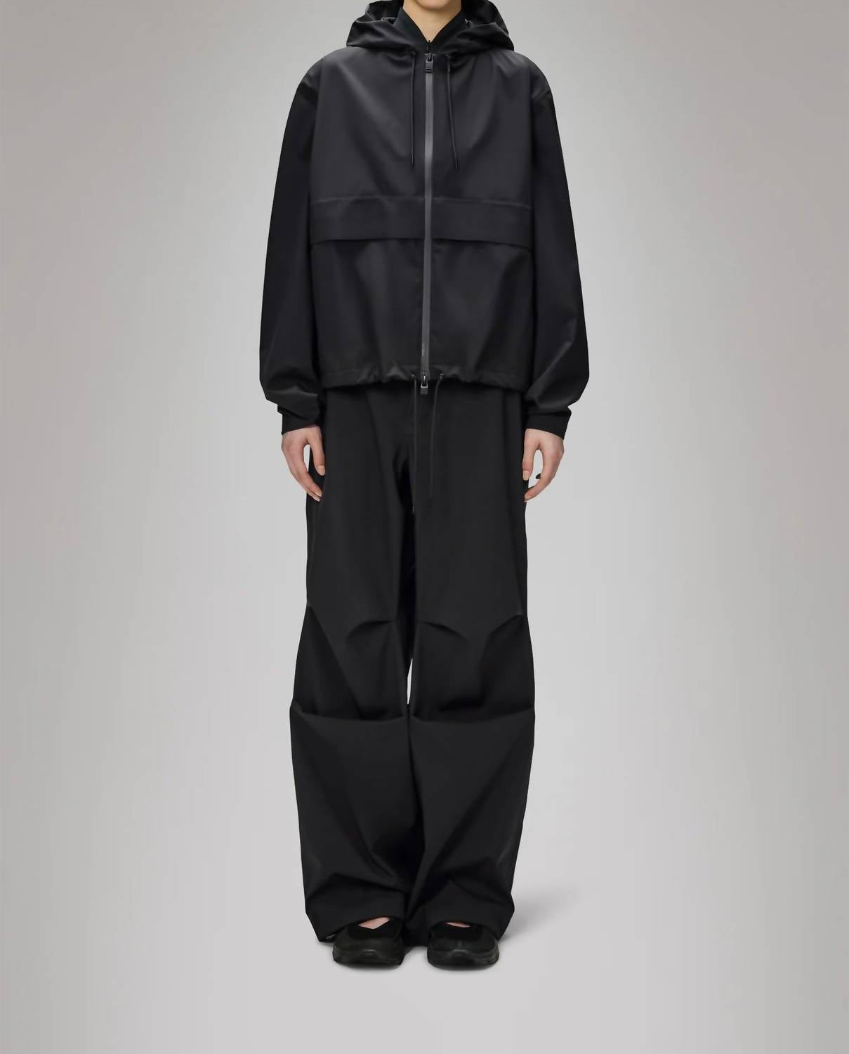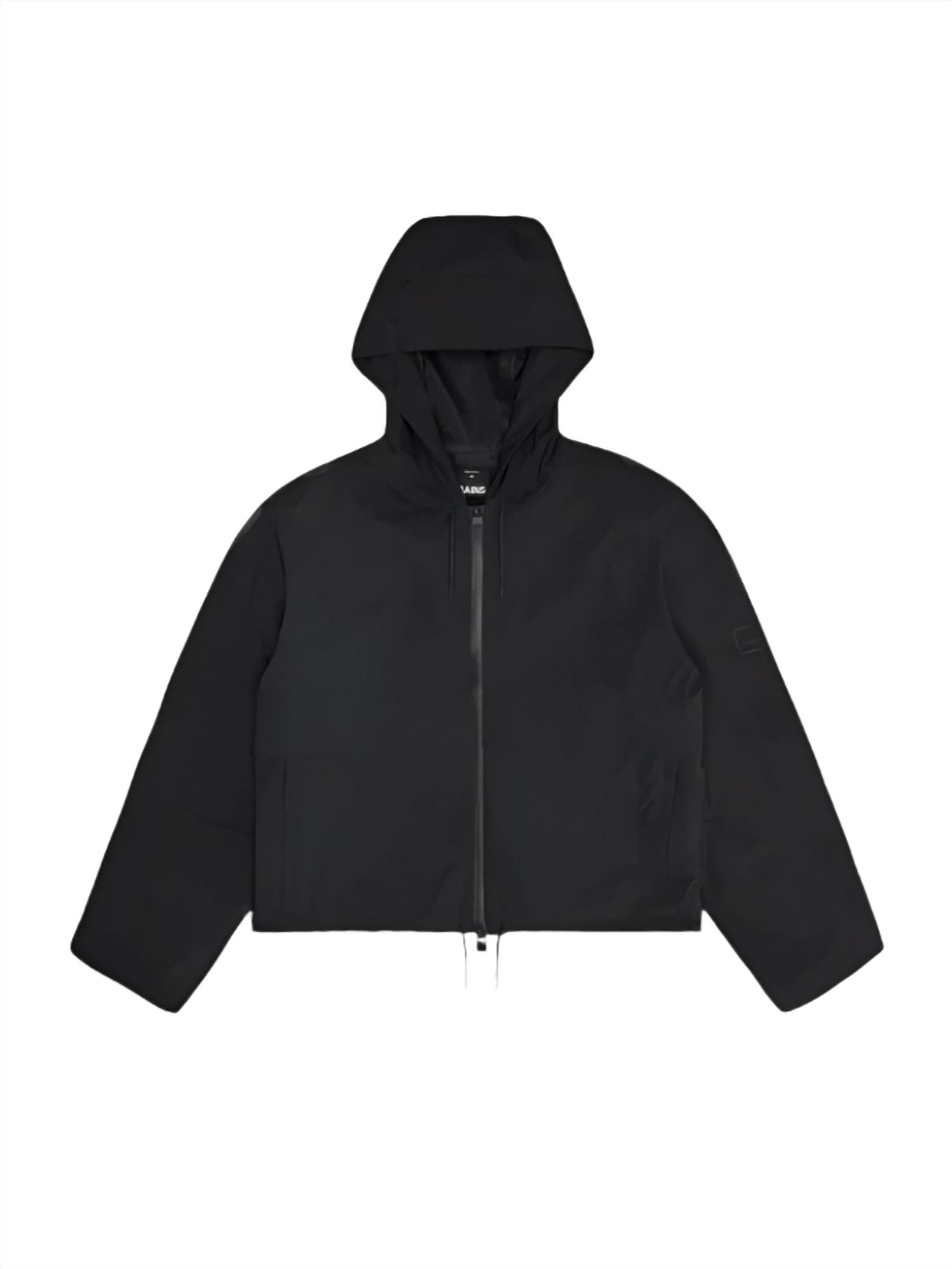 The ultimate cool-girl utility jacket. Discover the Suva Hardshell Short String W Rain Jacket by Rains, designed to blend high functionality with a stylish tech aesthetic. This black utility jacket features long sleeves and a waterproof, cropped design crafted from 100% polyester. It boasts convenient side and front zip pockets, along with drawstring adjustments for a customizable fit. Imported with a zip closure, this piece is easy to care for with machine wash instructions, making it a practical and chic addition to your wardrobe.