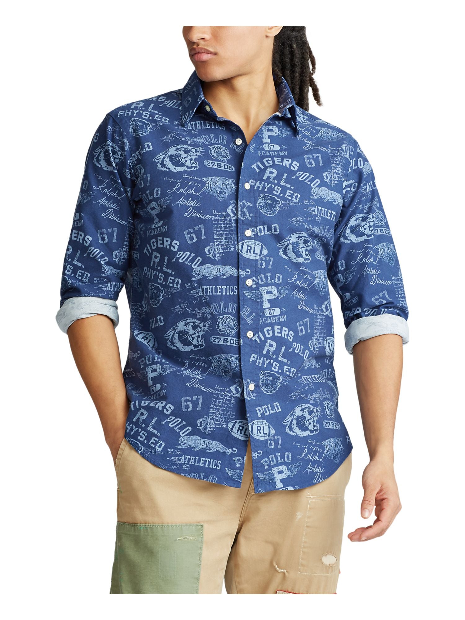 Men's Rugby Style Sweatshirt - Multi, Size L