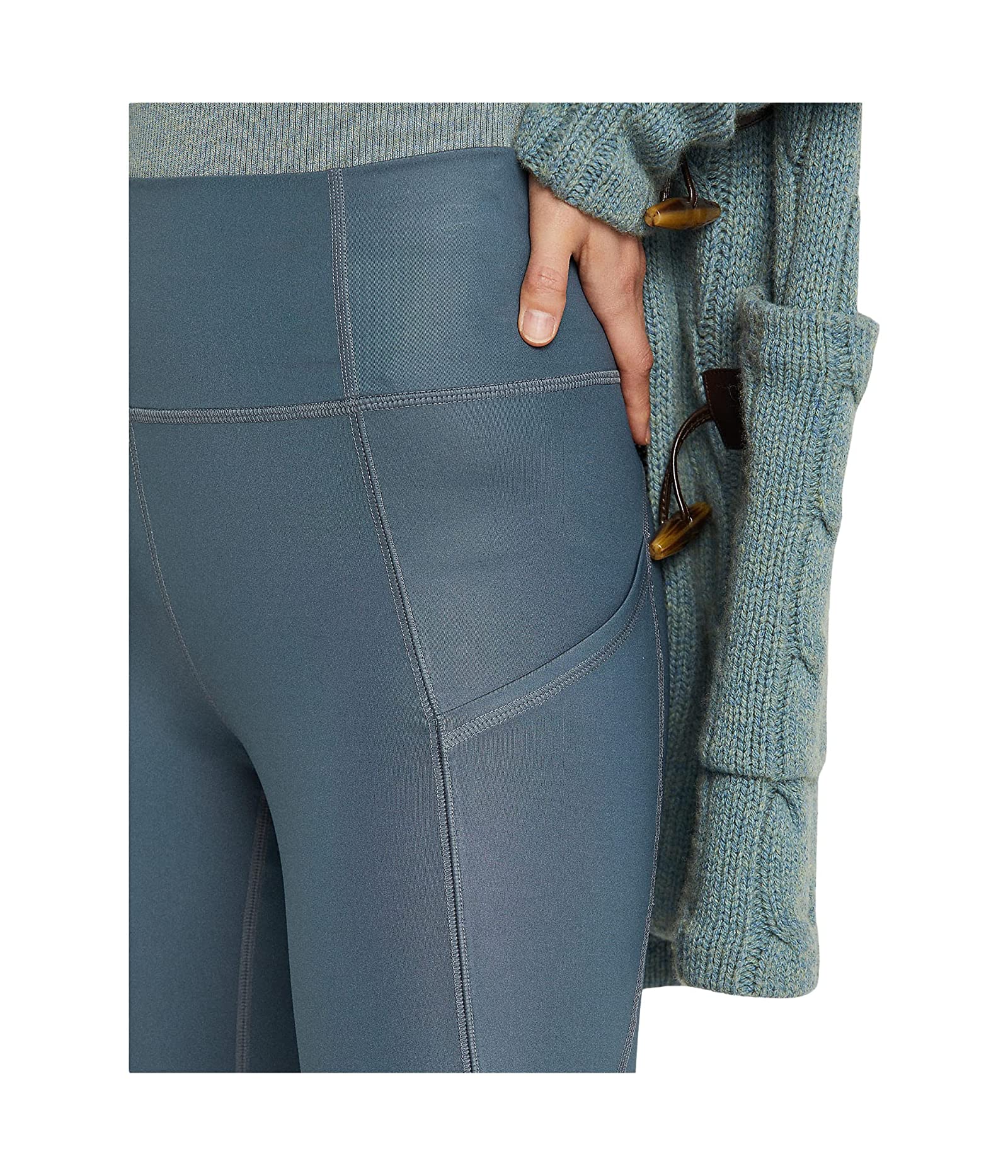 The primary materials that compose this product contain a minimum of 20 percent recycled content. | Put on an active look with Ralph Lauren® Coated Jersey Legging that are the perfect pants for lounging| working out| or running errands. | Slim fit. | High-rise broad elasticated waistband. | Crafted from stretch-infused coated jersey for a subtle sheen and the ultimate body-hugging fit.