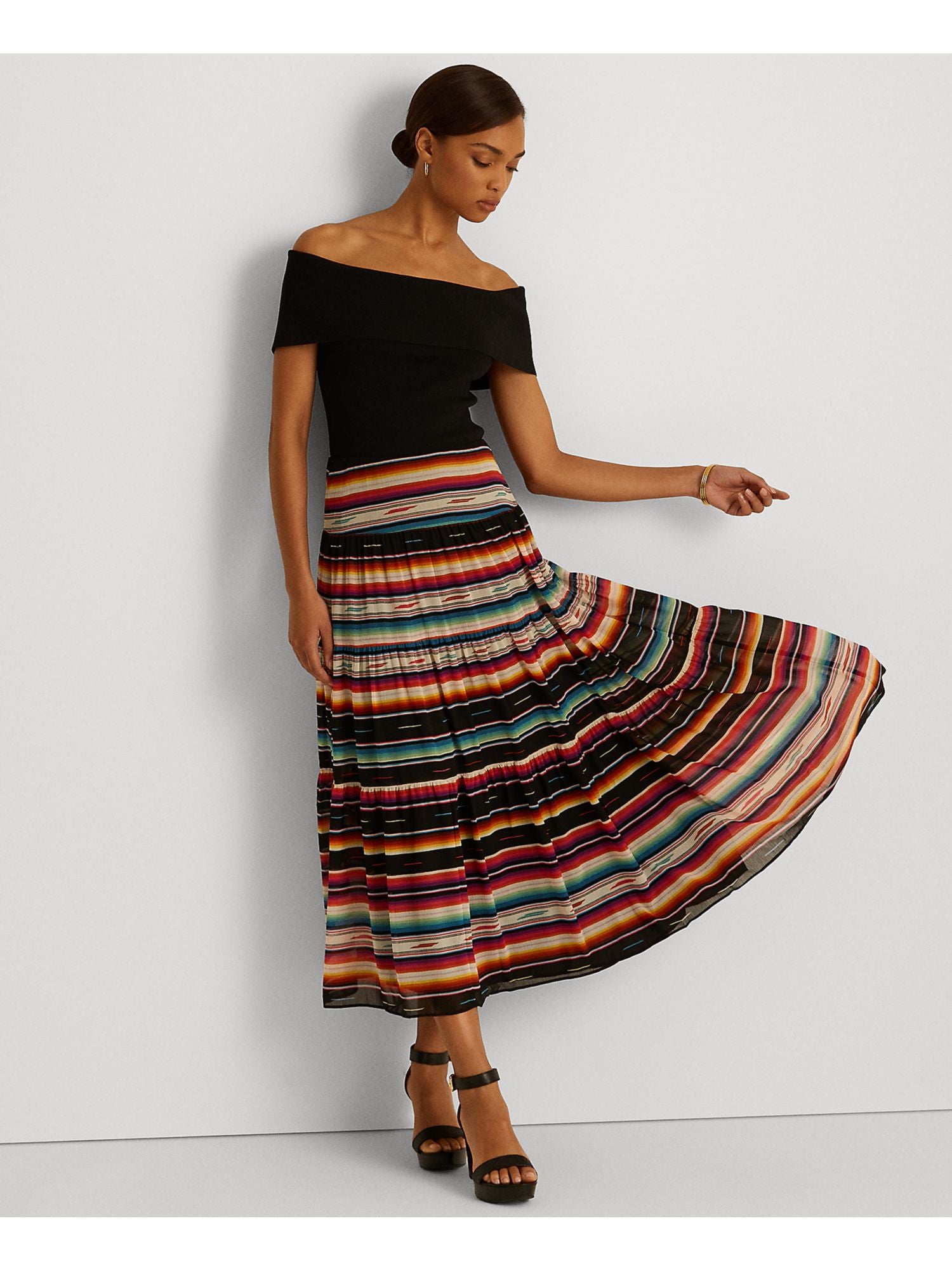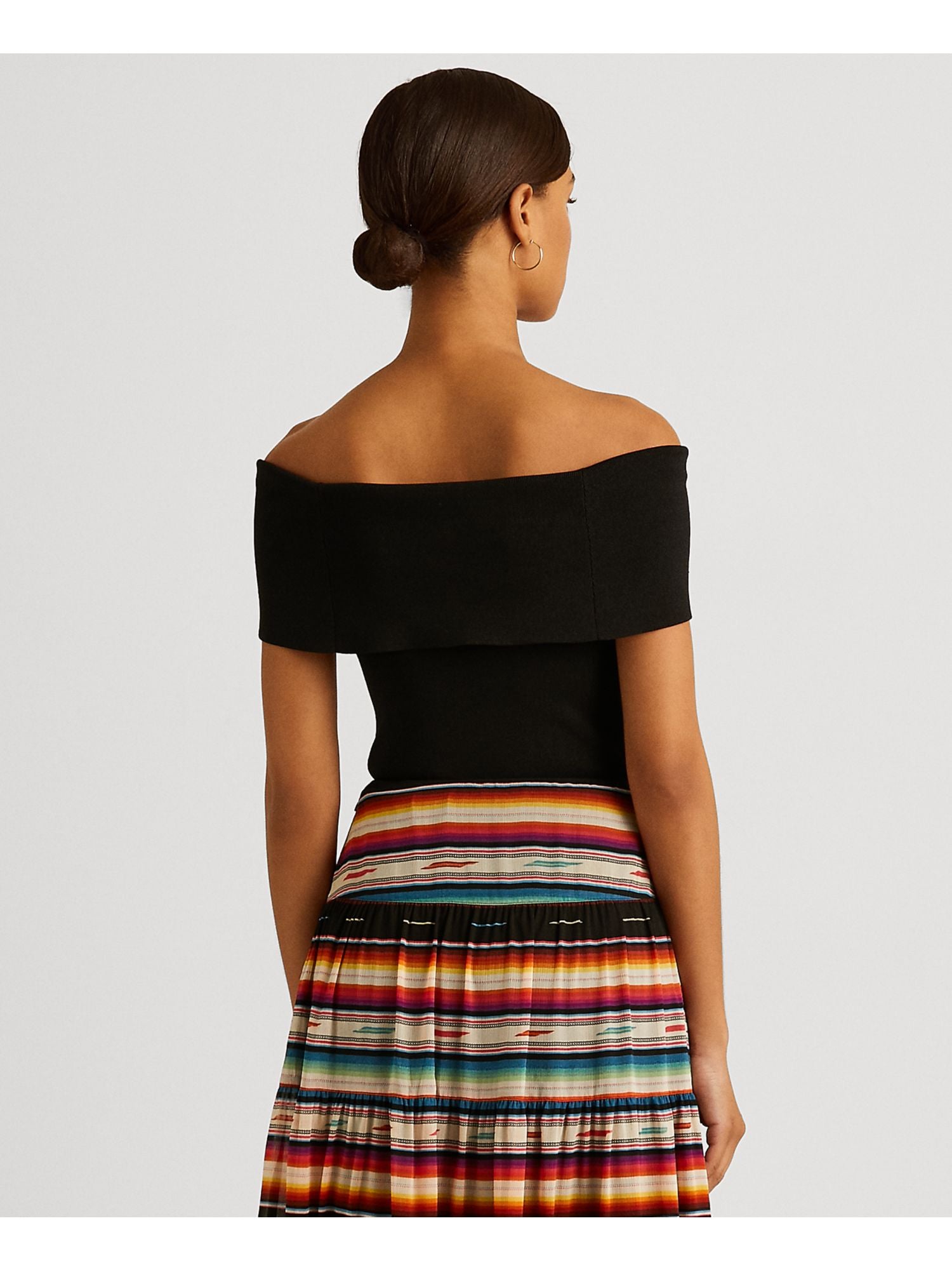 Ralph Lauren Women's Fitted Ribbed Short Sleeve Off Shoulder Party Top Black Size XX-Large