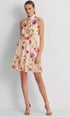165 LAUREN RALPH LAUREN PINK/SAGE/MULTI FLORAL CHIFFON WOMEN DRESSES* With a short-length construction| the LAUREN Ralph Lauren® Floral Chiffon Sleeveless Dress comes with an allover printed design.* Mock neckline and a self-tie accent.* Button-and-loop closure on the center back of the neck.* Elasticized waist.* Ruffle-trimmed skirt seam.* Fully-lined.* Sleeveless silhouette.* Pull-on style.* 100% polyester.* Dry-clean.* Imported.
