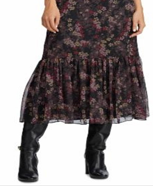 Ralph Lauren Women's Floral Print Georgette Skirt Black Size 12