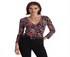 Ralph Lauren Women's Floral Surplice Jersey Top Black Size Small