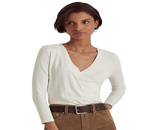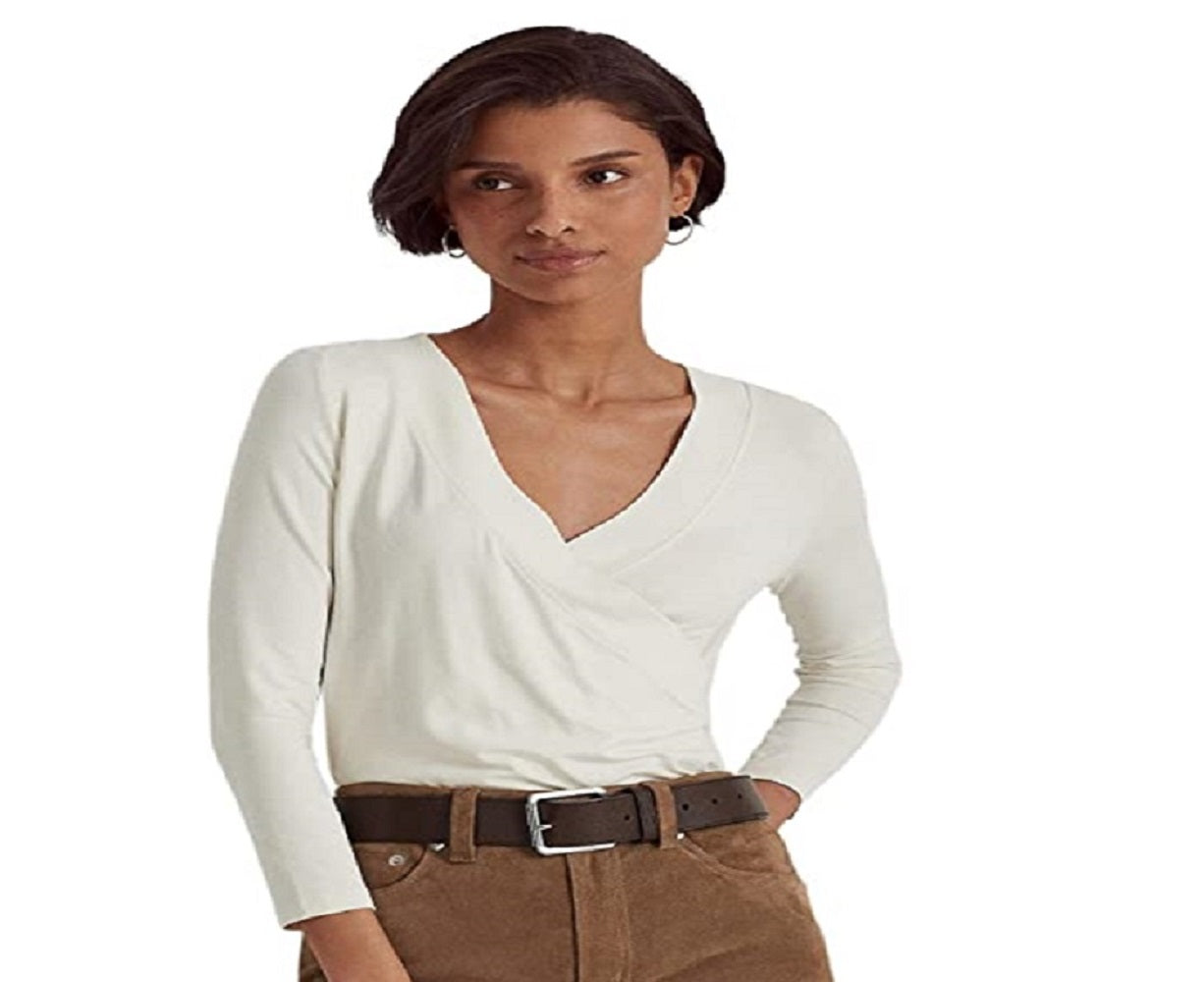 Ralph Lauren Women's Surplice Jersey Top White