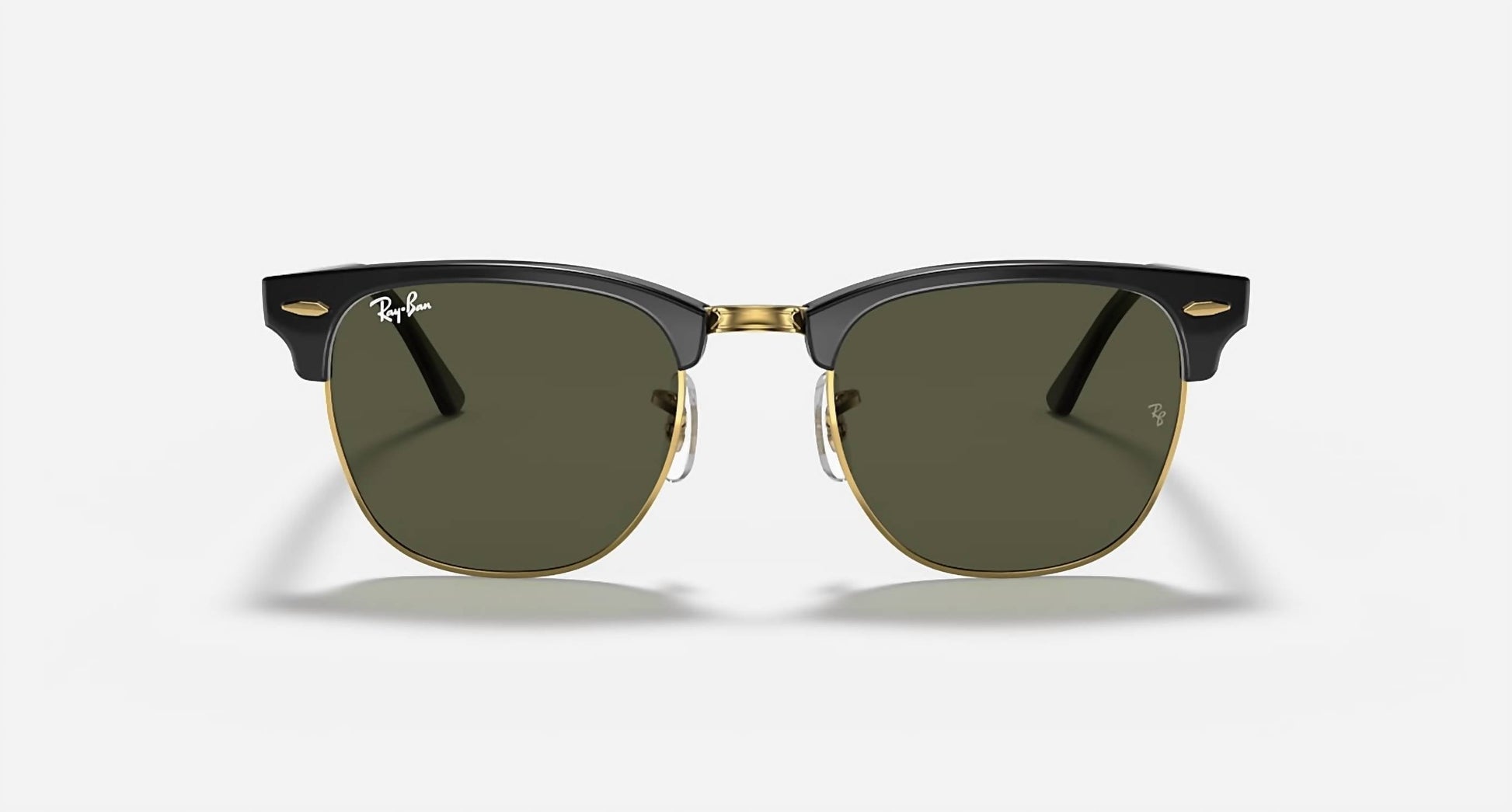 Elevate your style with the Ray-Ban Men's Clubmaster Sunglasses, a refined choice in Polished Black on Gold with G-15 Green lenses. These square-shaped sunglasses feature a polished acetate frame for a sleek and modern look. The adjustable nose pads ensure a personalized fit, while the standard face coverage offers comfortable wear. With a lens size of 49mm, temple length of 140mm, and lens height of 42.3mm, these sunglasses provide both function and fashion.