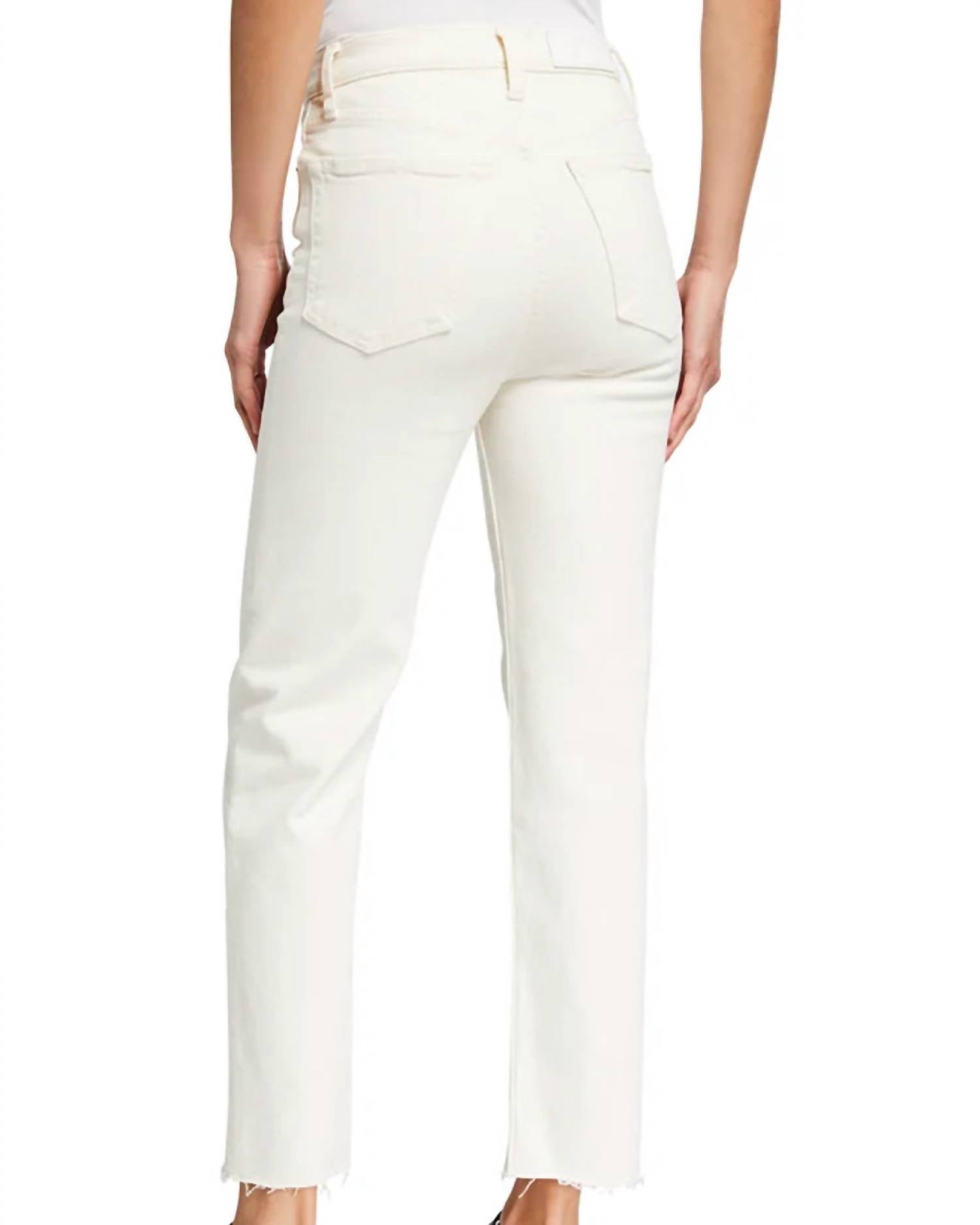 Fit to perfection, we love these high-waist jeans and you will too. High rise. Front button closure. Zip fly. Belt loops. 5 pocket style. Slim straight leg. Ankle length. Frayed, raw edge hem. 98% Cotton, 2% Elastane. Made in Mexico.