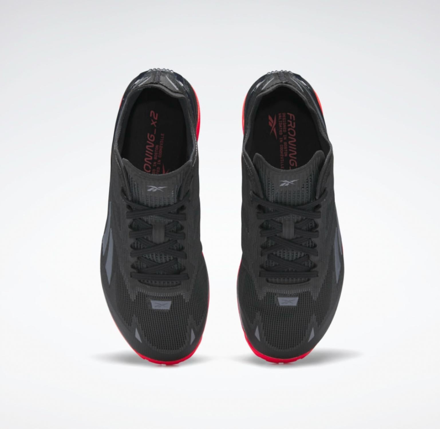 Introducing the Men's Nano X2 Froning Training Shoes by Reebok, designed in collaboration with Rich Froning for ultimate performance on game day. These competition-ready sneakers feature a lightweight, breathable mesh upper with perforated details and a secure lace closure. The Floatride Energy Foam offers responsive cushioning, while the ROPEPRO+ rubber outsole ensures a strong grip, especially during rope climbs. Available in Core Black, Pure Grey, and Neon Cherry, these imported shoes combine style and functionality for the modern athlete.