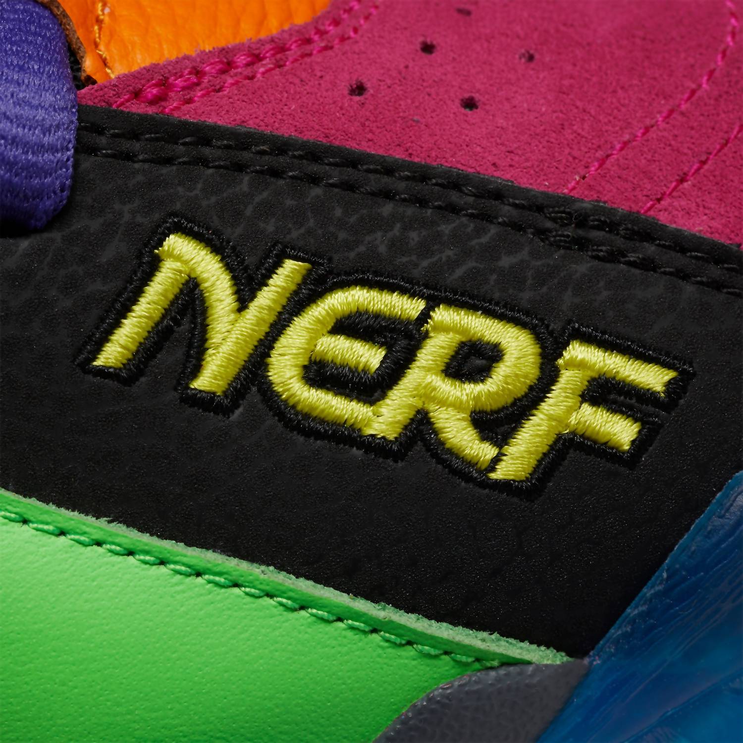 Step into retro flair with the Men's Nerf Kamikaze II Shoes by Reebok, in an eye-catching Black, Solar Lime, and Proud Pink colorway. These athletic shoes boast a tumbled leather upper with reflective accents, ensuring both durability and style. Designed with EVA midsole and Soft Hexalite hexagonal cushioning for exceptional comfort, they also feature a rubber outsole and an embroidered NERF logo for a playful touch. These shoes provide all-day comfort and style for game day or any spring occasion. Product code: GY8070.