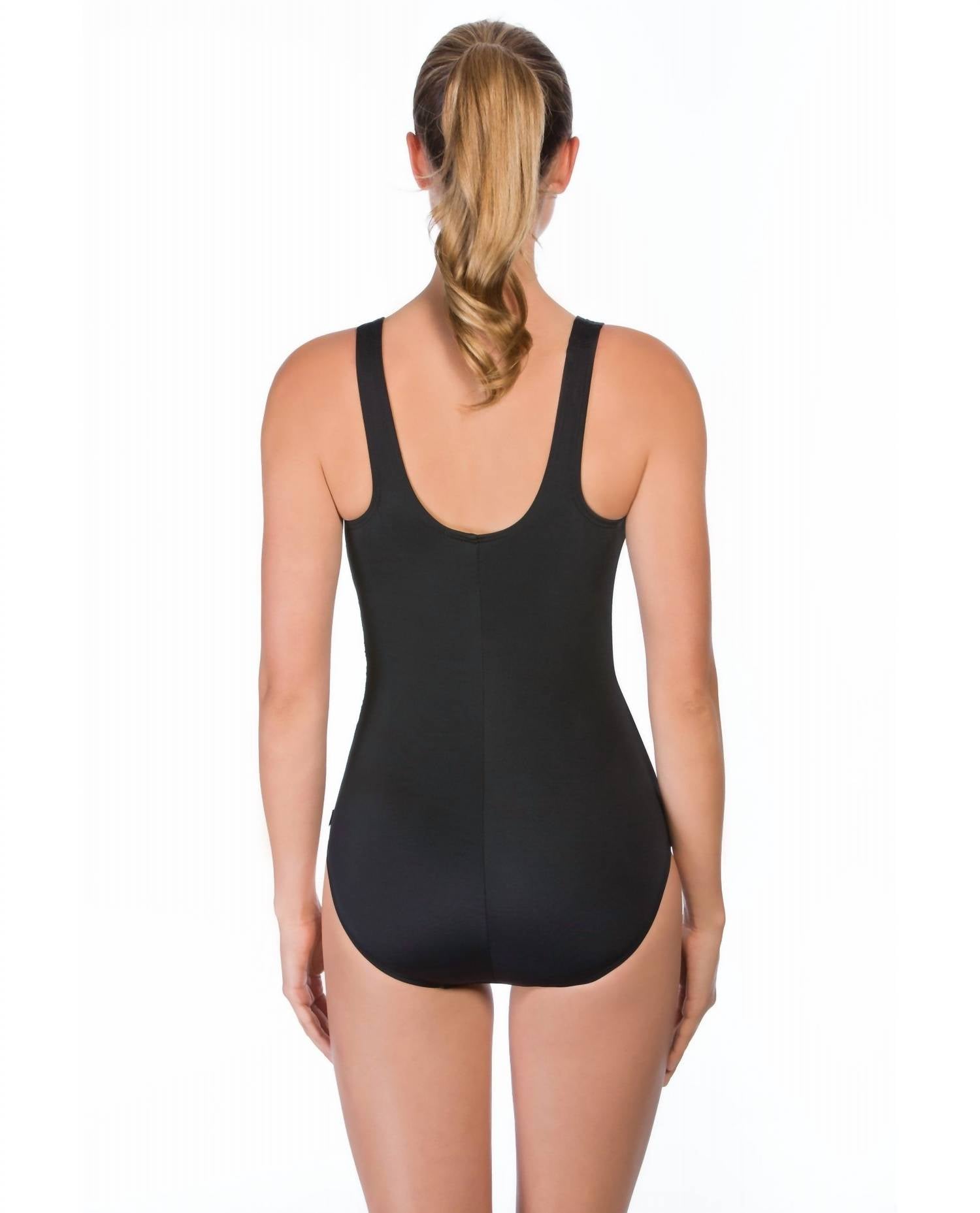 A one piece so chic you could even wear it as a bodysuit with your favorite pair of jeans. Elevate your swimwear collection with the Pretty Pleatz High Neck One Piece Swimsuit by Reebok, designed in a striking black and white patterned style. This women's swimsuit offers full coverage with a stylish high neck, making it both elegant and practical. Made with an 80% nylon and 20% lycra blend, it ensures a comfortable fit and durability. Ideal for those looking for a chic and functional one-piece option for the water.
