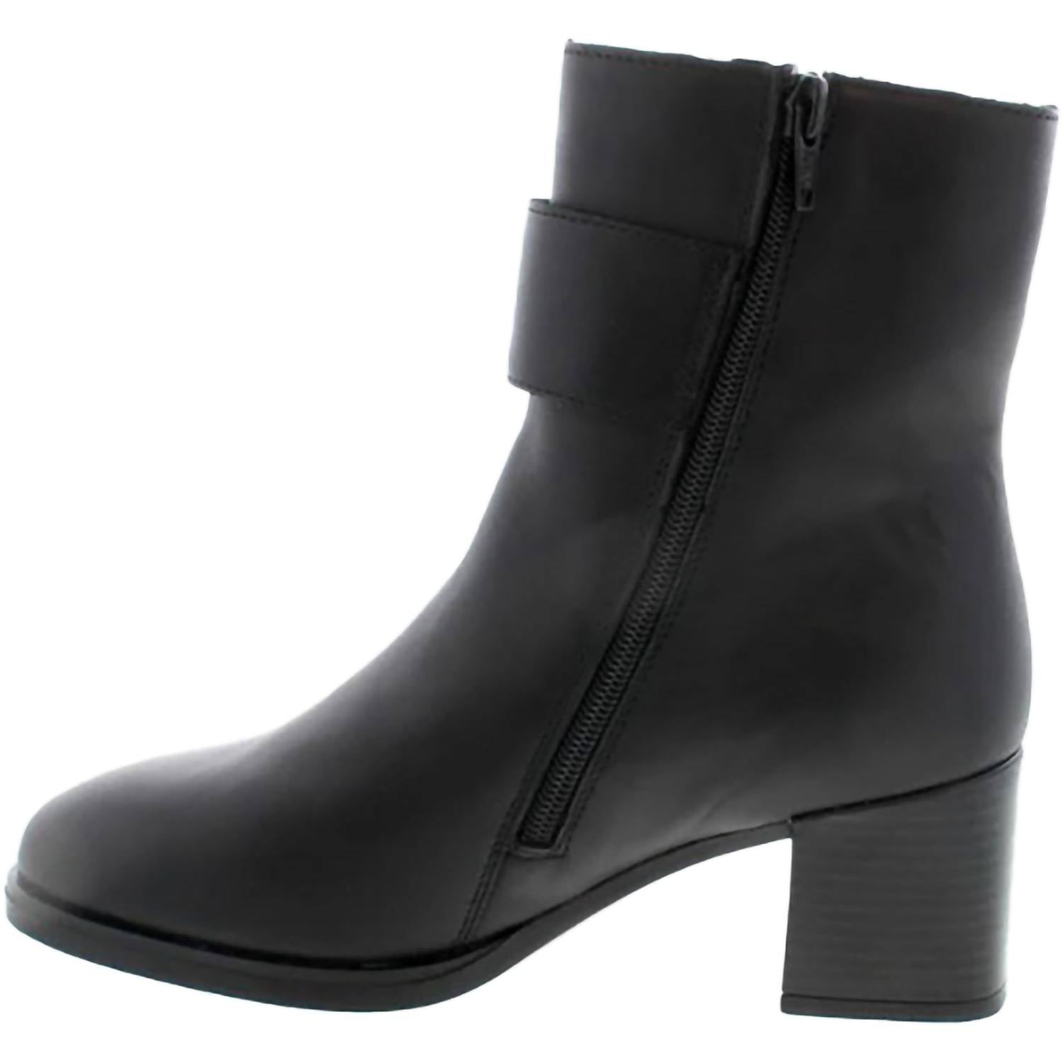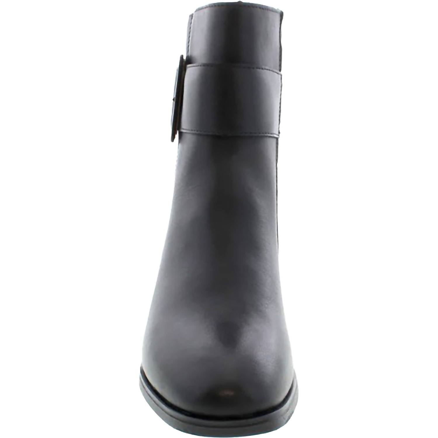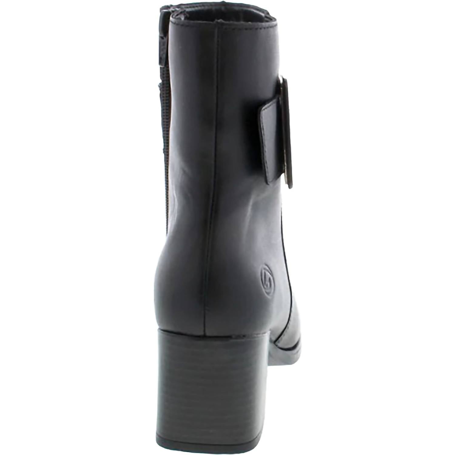 Say hello to the perfect, most versatile boot. The ankle height makes this style easily transition from day to night. Wear them with your favorite skinny jeans and tee for a more laid back look, or pair them with your favorite mini dress and jacket for a night out on the town. Step into sleek style and comfort with the Remonte Women's Leather Ankle Boots, a perfect addition to your fall wardrobe. Crafted from premium leather in a classic black hue, these boots feature a distinctive rectangular buckle for added elegance. The block heel is mid-height, measuring between 2 1/4 to 3 inches, providing a comfortable lift suitable for evening events. With a convenient side zip closure and removable insole, these boots are designed for both style and practicality.