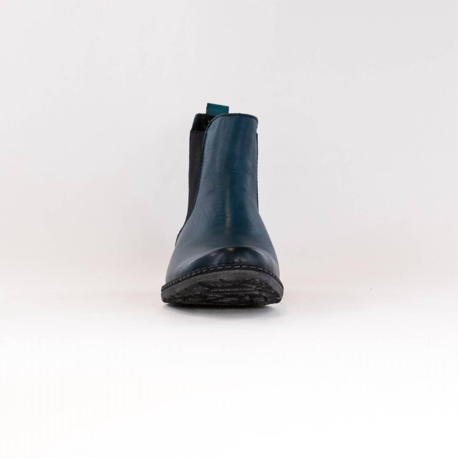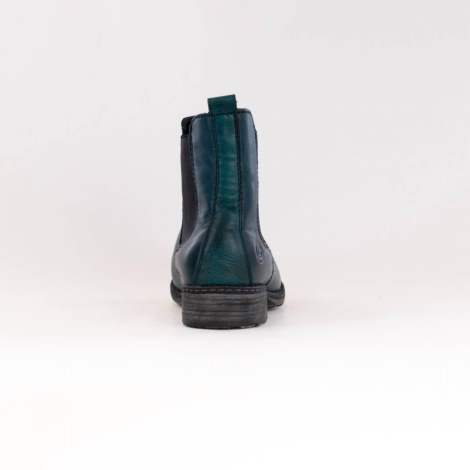 Upgrade your shoe game with these classic heeled boots, designed to merge sophistication and style. Comfortable enough for long days or a night out on the town. The RIEKER Women's Chelsea Boots in blue combine style and comfort for your day-to-night transitions. With a leather upper and removable footbed, they ensure a comfortable fit. Designed with a 1-inch chunky heel and an almond toe shape, these boots are perfect for a dinner party or any fall occasion. Enjoy easy walking with the practical heel height, making them ideal for modern streetwear.