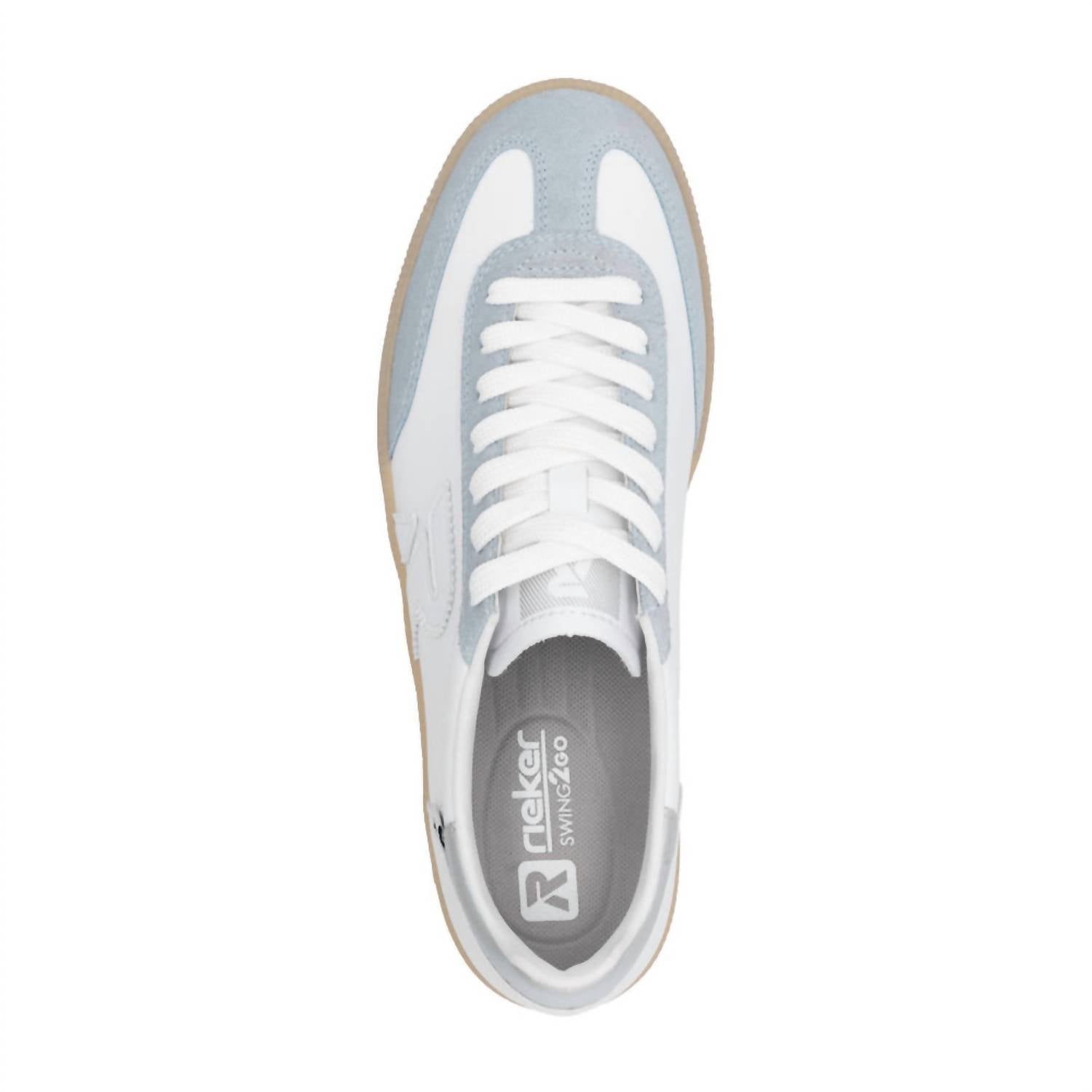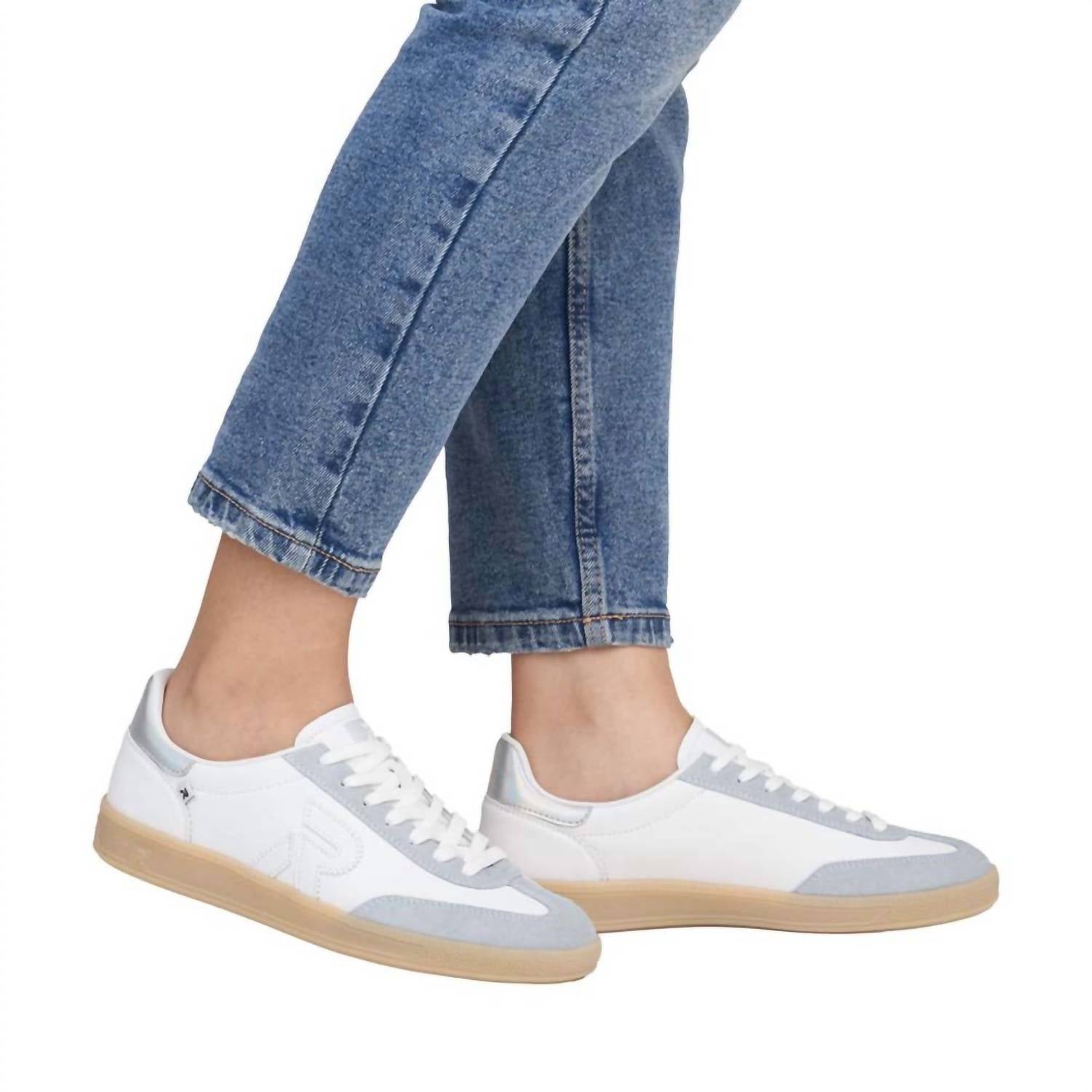 Elevate your casual style with the Women's W2200 Sneakers by RIEKER, featuring a chic leather upper in striking bleu. Designed for modern comfort, these sneakers embody minimalist charm with a flat heel and round toe shape, ideal for spring outings. The lace-up closure ensures a customizable and secure fit, while the lightweight construction delivers all-day ease. Perfectly suited for Thanksgiving dinner parties or any relaxed occasion.