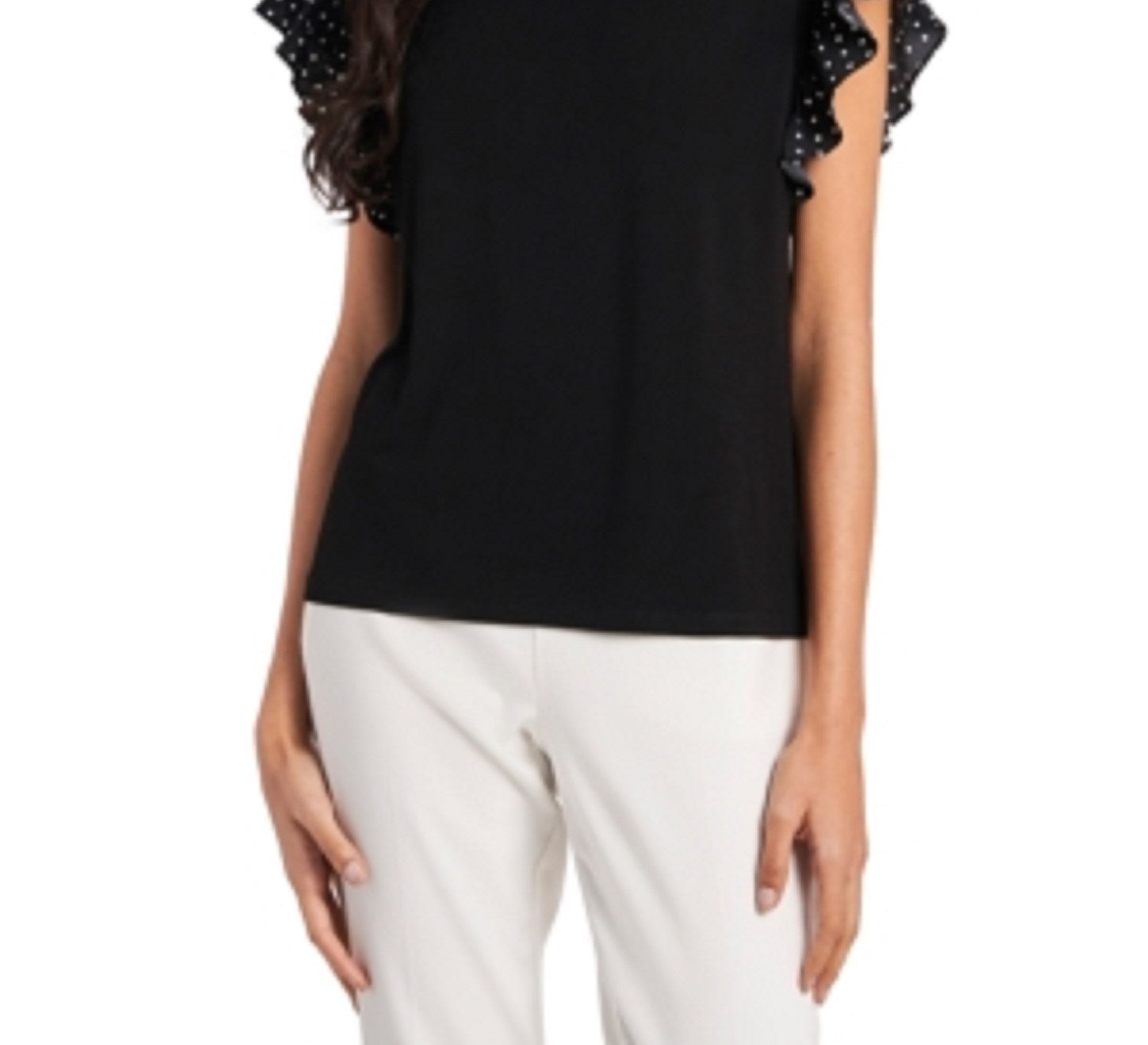 Ask a question about Riley & Rae Women's Polka-Dot Ruffled-Sleeve Top Gray Size X-Small