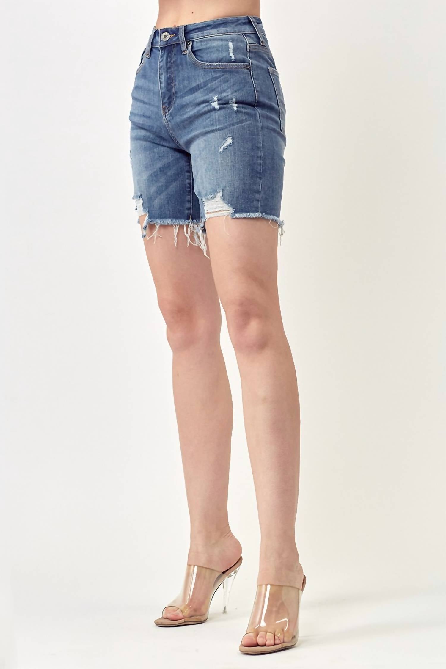 Risen - Distressed High Rise Thigh Shorts - Plus