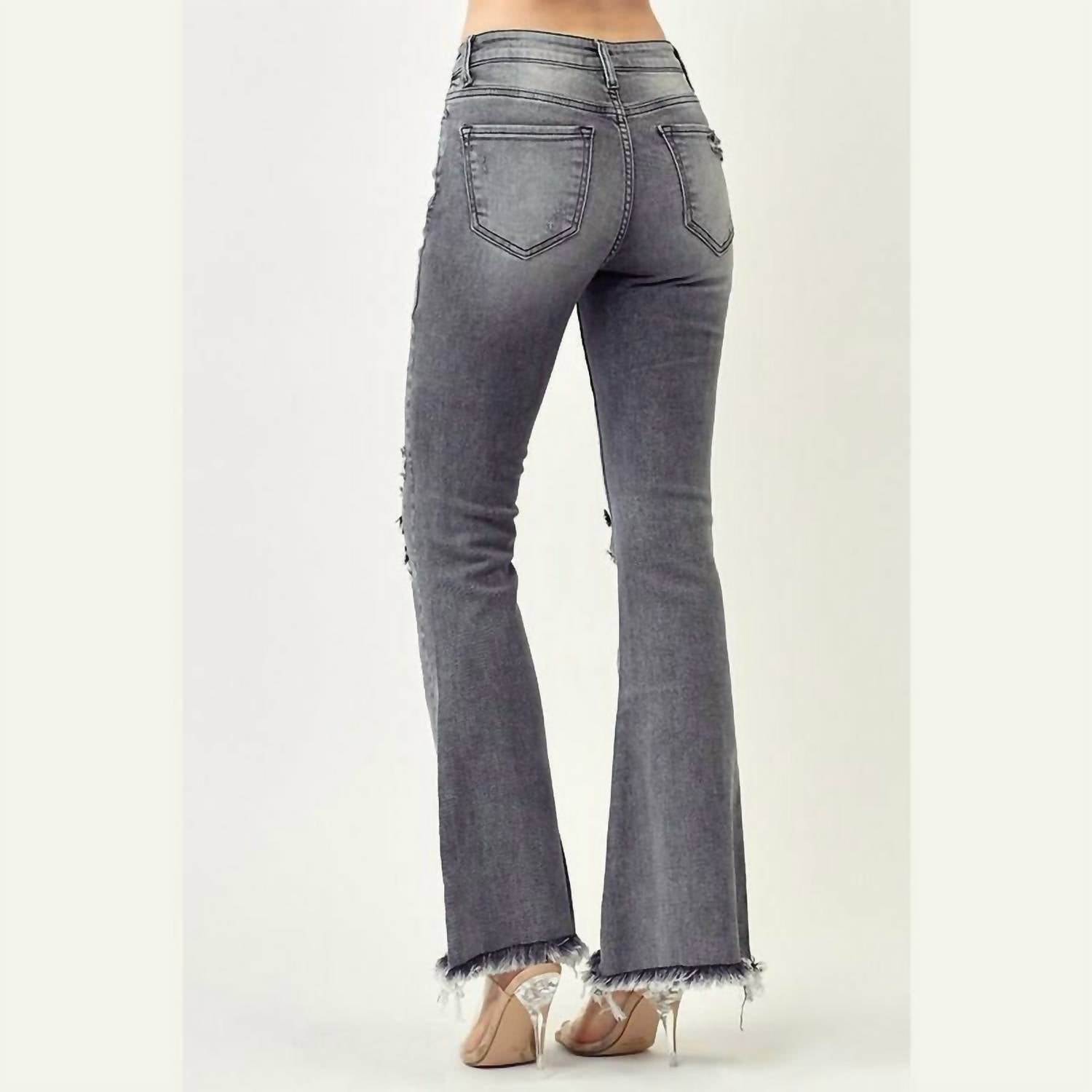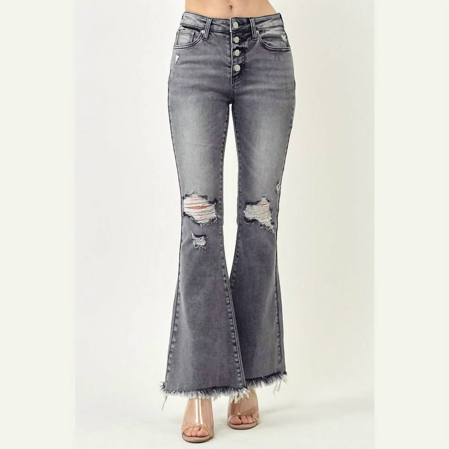 A flattering silhouette that's suprisingly versatile. Elevate your denim collection with Risen's Mid Rise Flare Jeans in classic Wash Denim. Designed to enhance your curves, these jeans feature a distressed and faded style, offering both fashion and comfort. Crafted from a Cotton Blend of 95% Cotton, 4% Polyester, and 1% Spandex, they ensure a snug fit with an inseam of 31.5 inches. Ideal for pairing with your favorite crops and tees, they close with a button and promise enduring wearability.