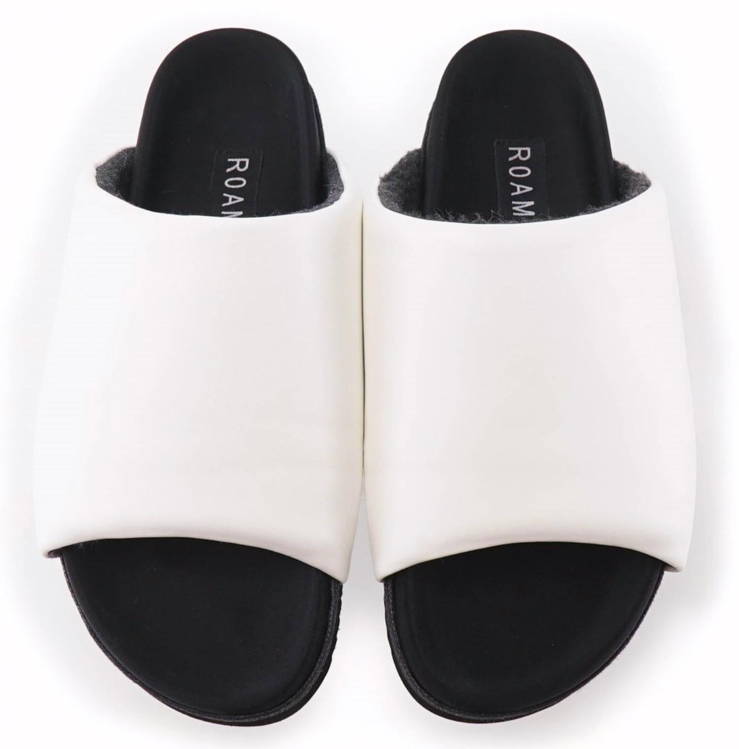 Flowy dresses, cropped pants, and even jumpsuits... this sandal works with them all!These new slider sandals are beautifully made in a smooth nappa leather. They are meticulously created for a cool and sporty look. We integrate a unique process by hand that incorporates memory foam into our uppers which creates extreme comfort and allows each of our shoes to mold to your feet. They are backed in cotton fleece for added softness and truly create a hug for your foot. Our custom molded footbed provides both tremendous comfort and support. They are covered in black neoprene, for breathability and wicking keeping your feet comfortable and dry. Our sole is made of a high-flex, durable tread which allow the slippers to move with your feet. Perfect for ROAMING anywhere....whether it is traveling around your city or a new one exploring, post-workout, to and from the office, school drop offs, or walking your dog...anywhere you'd want your feet to be fashionable, cool and comfortable.R0AMs should fit snug on your feet, for a flop-free walk.