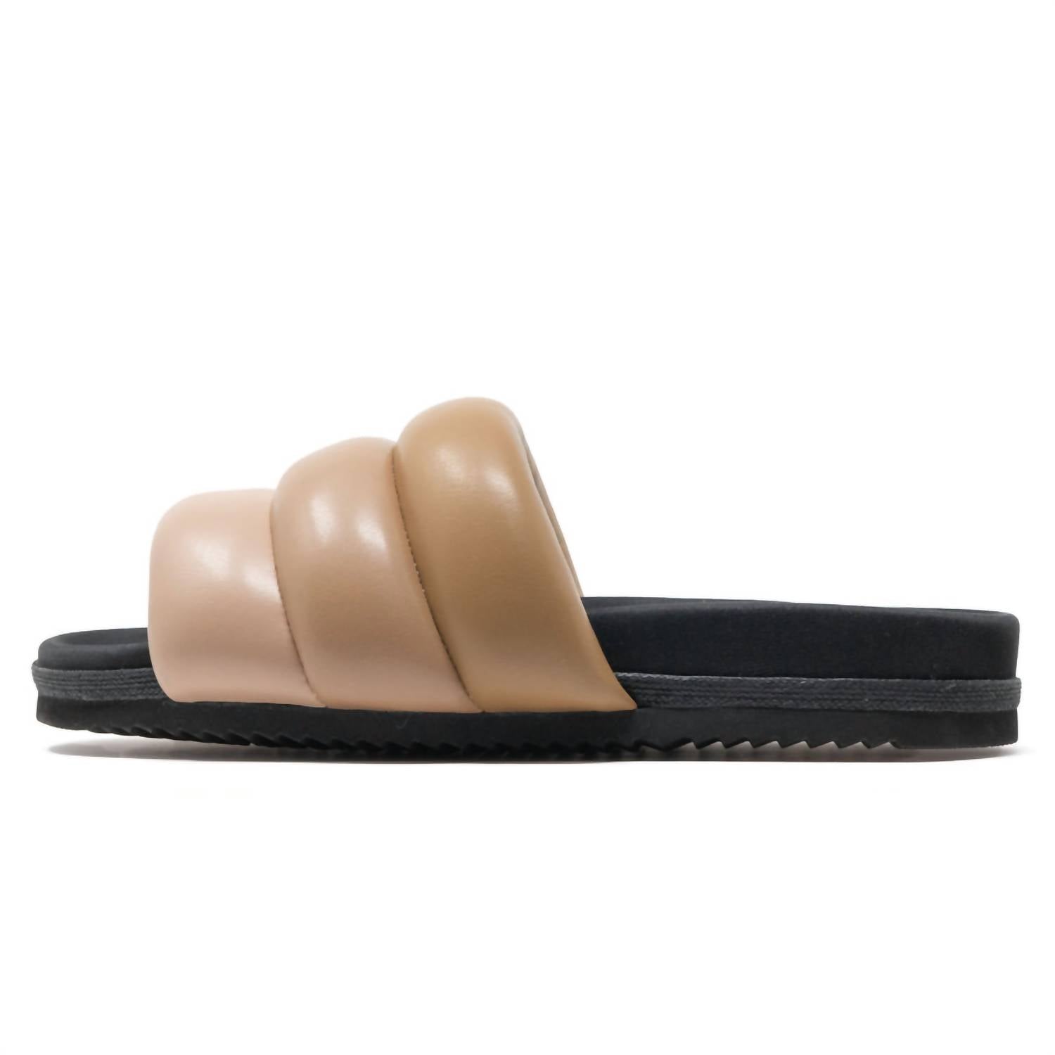 This sandal will take you from brunch to dinner and everything in between. Step into comfort and style with the Women's Puffy Sandal by ROAM, crafted in Earth-toned leather for a sophisticated touch. Designed with an open toe and a medium width, these sandals offer a flattering fit. The flat sole, measuring at a height of 1" and under, ensures ease of wear throughout the day. Perfect for any occasion, these sandals cater to an adult women's audience with an eye for chic simplicity.