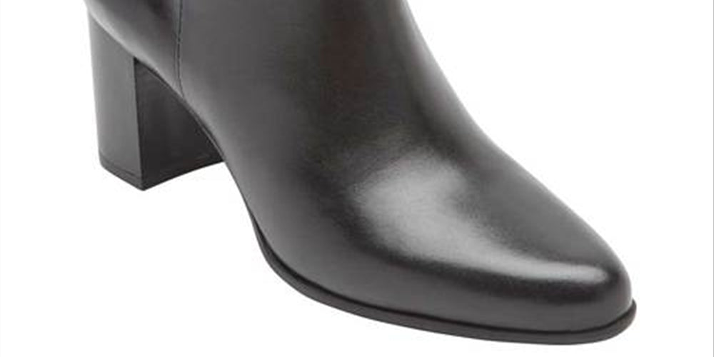 Rockport Women's Flex Gore Accent Camdyn Block Heel Zip up Leather Boots Black Size 8 M