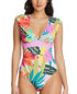 It's all about the print! This Bleu by Rod Beattie one-piece makes a bold statement with its colorful palm fronds and cute cap sleeves. | V-neck; printed| Imported| Pull-on styling; cap sleeves| Full bottom coverage | Removable cups| Lined