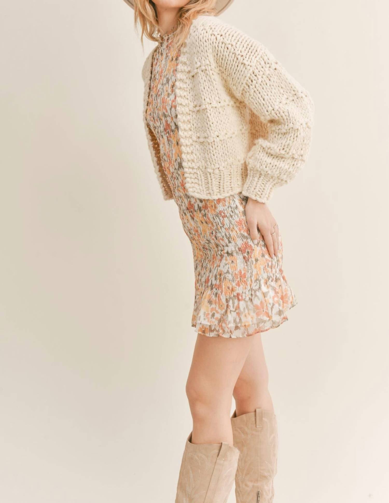 Throw this adorable cardigan over any cami or tank top. Embrace boho chic style with the Innerbloom Handmade Open Cardigan by Sadie & Sage, designed for effortless vacation wear. Featuring long sleeves and a V-neckline, this textured cardigan comes in a serene off-white hue. Composition: 100% Acrylic. Care: Machine wash, lay flat to dry.