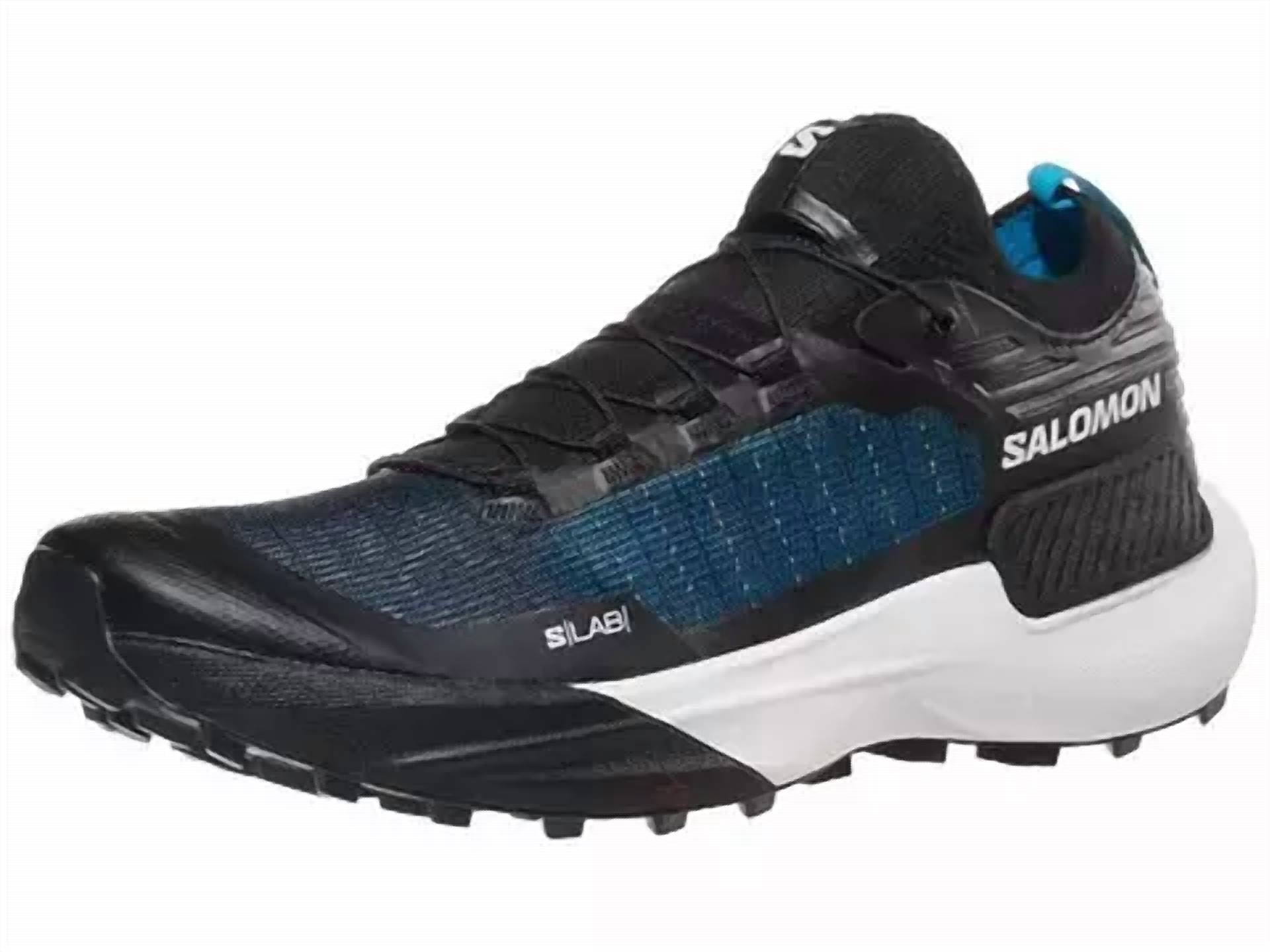 Discover the SALOMON S/Lab Genesis Shoes, a top-tier choice for trail runners who demand durability and high-tech performance. These unisex, race-grade sneakers feature a Matryx upper that ensures durability without added weight and a highly responsive Energy Surge Foam for maximum comfort. Designed with a flat heel and round toe shape, they're perfect for tackling rocky and technical terrains with enhanced protection around the heel and toe cap. Ideal for summer athleisure and fitness workouts, this pair in Black/White/Blue is ready to keep you advancing through any challenge, even during Thanksgiving.