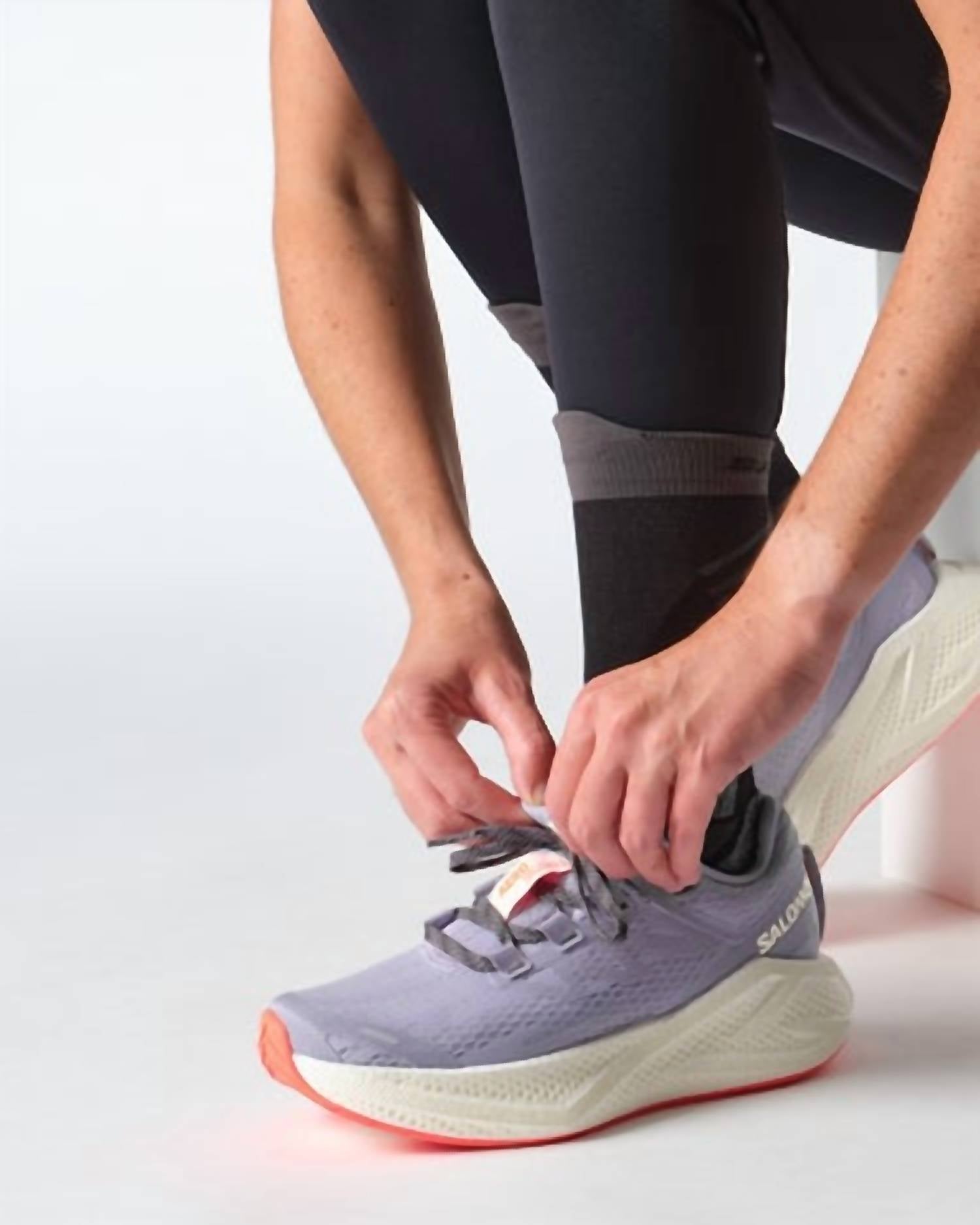 When fashion meets function. Introducing the Women's Aero Glide 3 Shoes by SALOMON, designed to elevate your running experience with cloud-like cushioning. This athletic shoe features a seamless upper construction that offers a glove-like fit, ensuring unparalleled comfort during workouts. With a flat heel height under 1 inch and a round toe shape, these shoes provide both style and functionality in their sleek Black/White/Asphalt color scheme. Perfect for athleisure trends and summer fitness routines, these trainers are ideal for those who value comfort and performance.