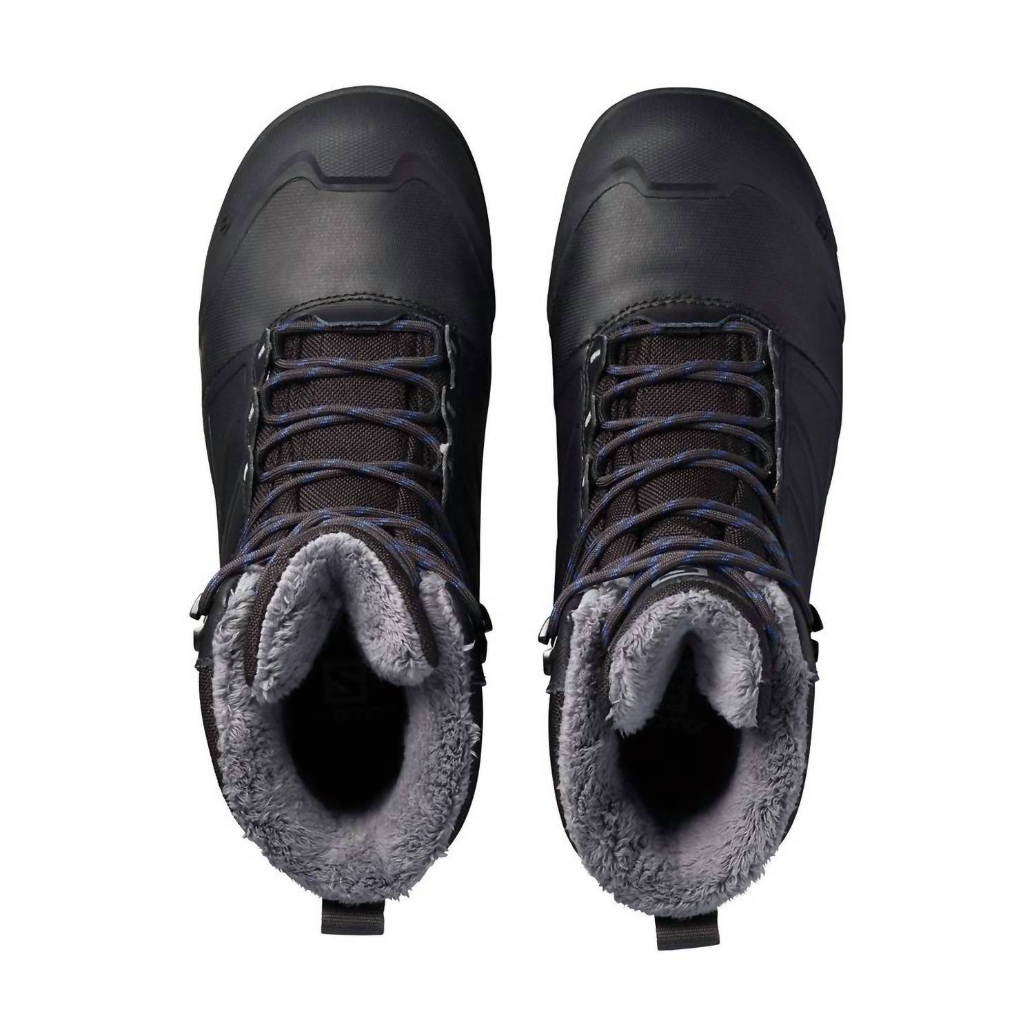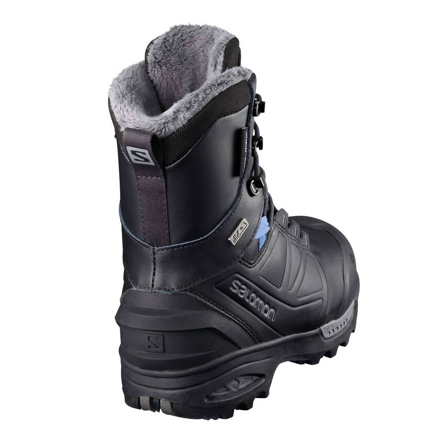 Elevate your winter adventures with the Women's Toundra Pro Cswp Boot by SALOMON, perfect for cold-weather hiking. These boots feature a lightweight construction and Aerogel insulation for optimal warmth, paired with leather for durable protection. Showcasing a round toe shape in a striking Phantom/Black/Amparo color scheme, they provide excellent traction in winter conditions. Ideal for a boho chic look, these boots are designed for women seeking both style and functionality.