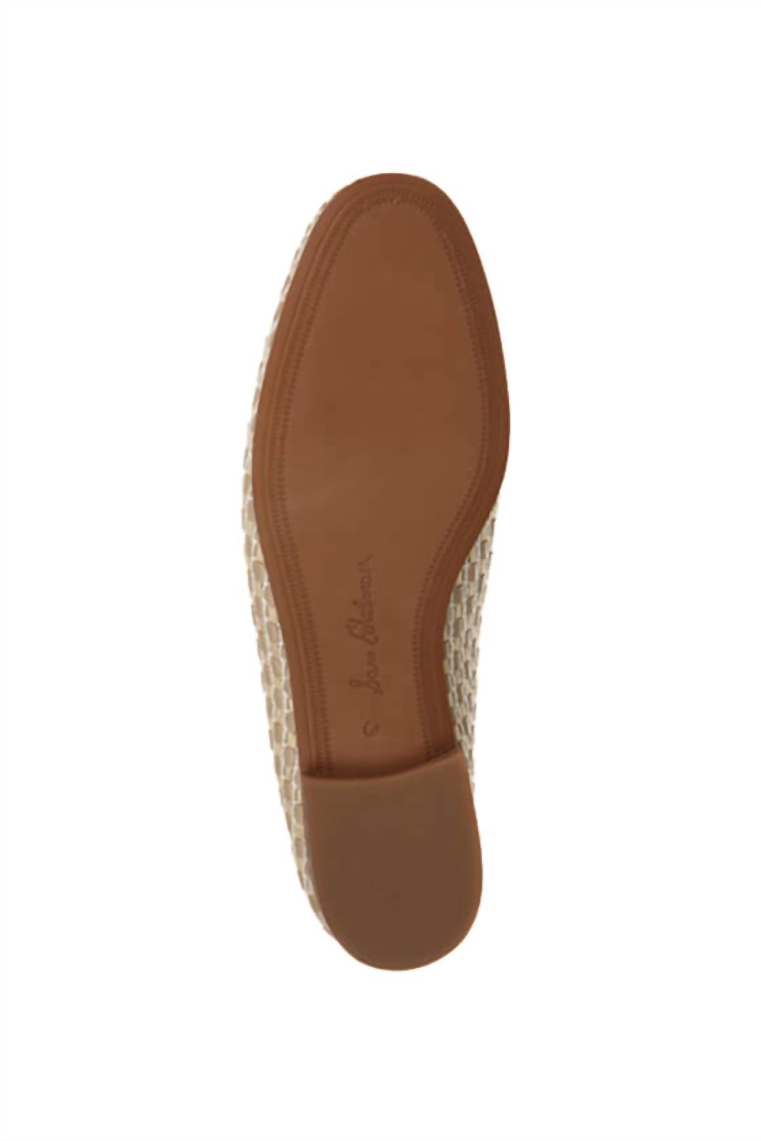 A classic loafer that is both comfortable and polished. An elegant almond toe shape. This stylish flat heel loafer is crafted with a synthetic and woven material, paired with a soft leather insole that offers supreme comfort.