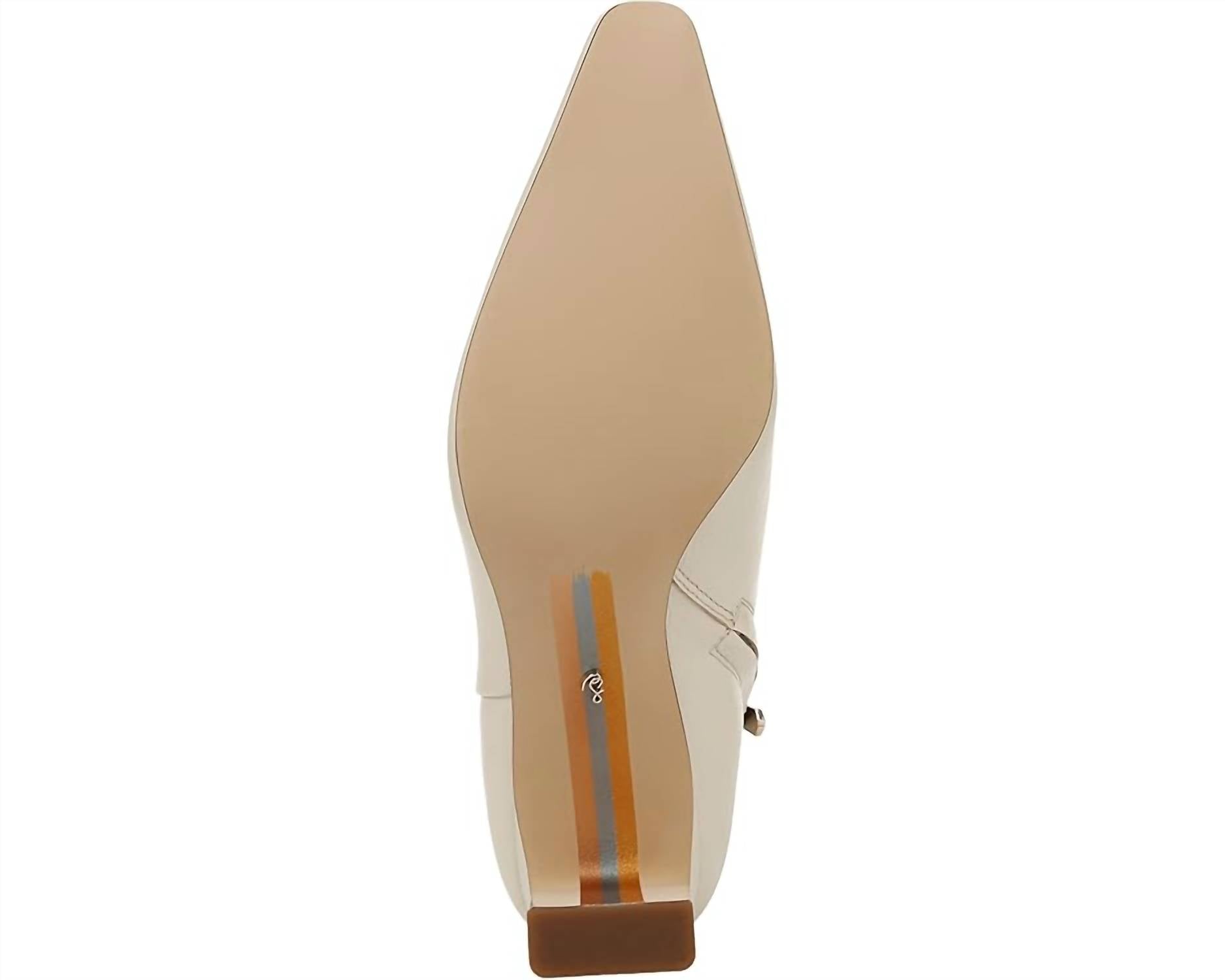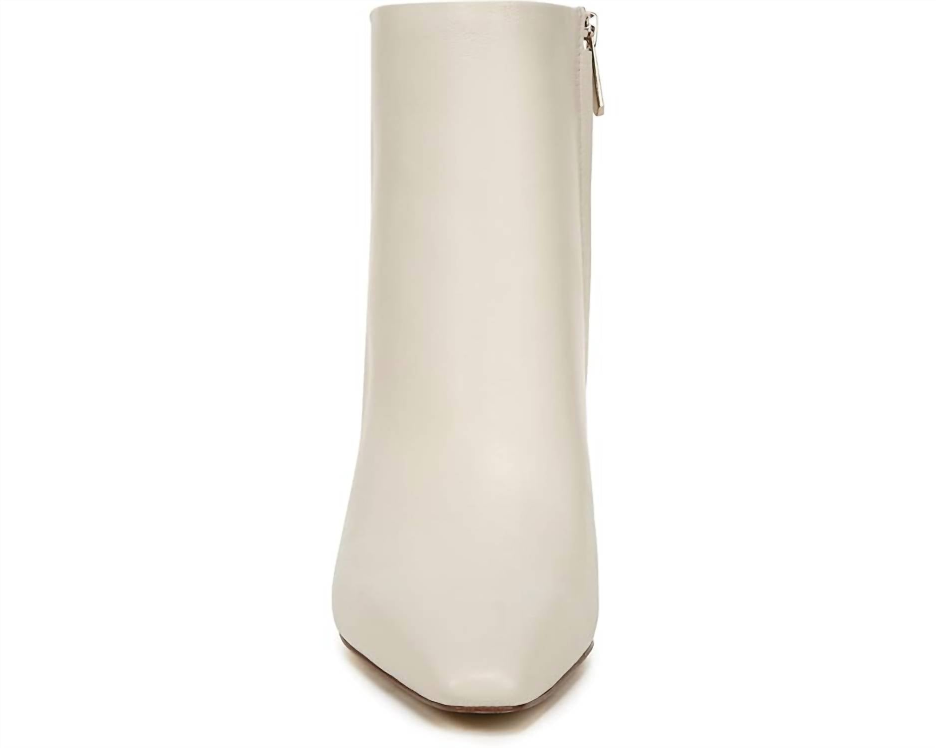 Say hello to the perfect, most versatile boot. The ankle height makes this style easily transition from day to night. Wear them with your favorite skinny jeans and tee for a more laid back look, or pair them with your favorite mini dress and jacket for a night out on the town. Step up your shoe game with the Women's Saige Boot by Sam Edelman, available in a chic Mod Ivory Leather. These stylish ankle booties feature a pointed toe and a secure zipper closure, poised on an architectural heel with a height of 2.7 inches. Made from premium leather, the Saige Boot ensures both durability and elegance, complemented by a 4.7-inch boot shaft and a calf circumference of 9.8 inches. Whether paired with your favorite little black dress or a trendy wrap dress, these boots promise to elevate any ensemble.
