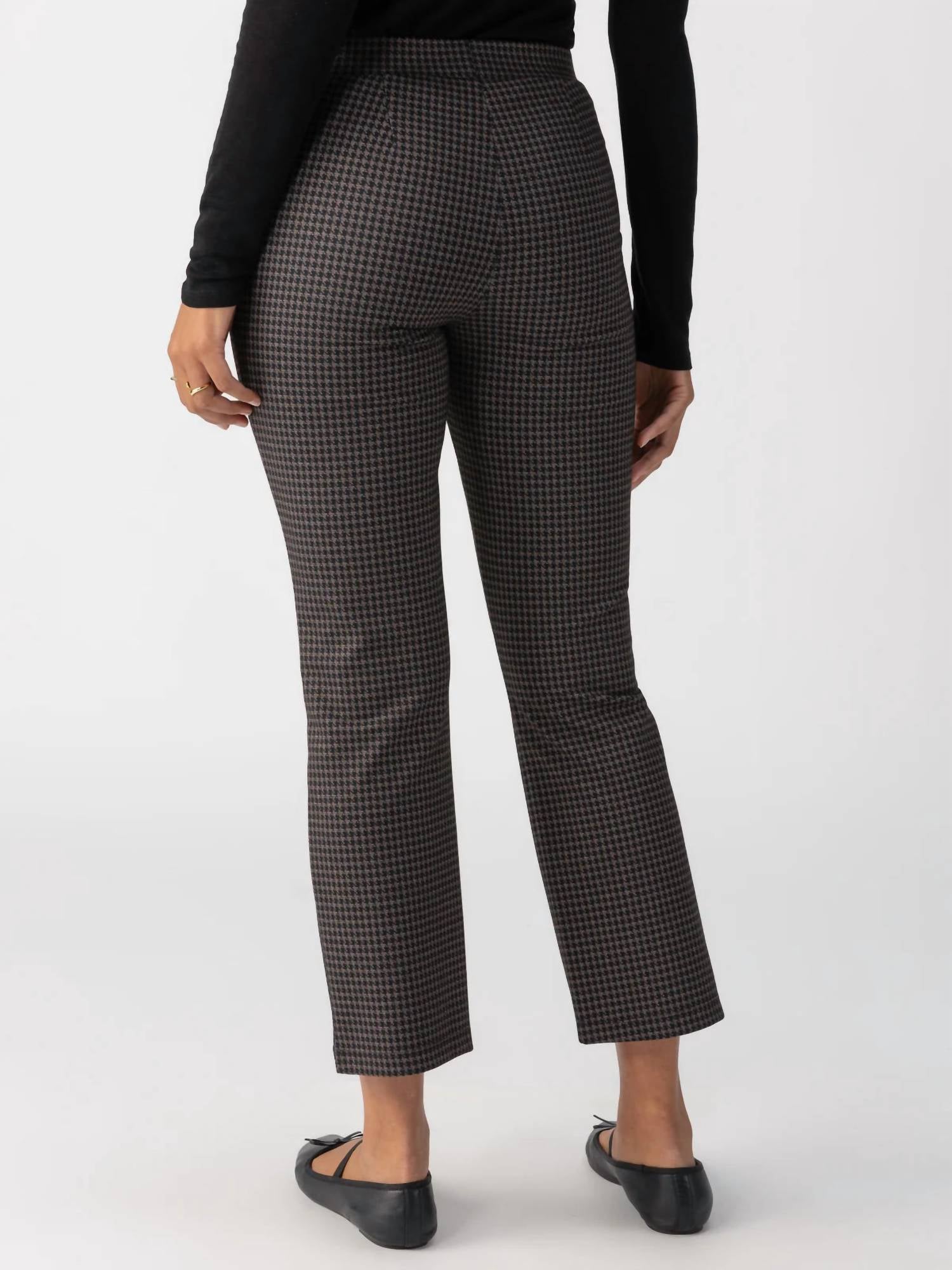Experience the effortlessly chic style of Sanctuary's Carnaby Kick Crop Leggings, perfect for any occasion. These leggings feature a classic black and tan small houndstooth pattern in a fitted through the thigh, crop kick flare style. Composition: 68% Rayon, 27% Nylon, 5% Spandex, offering a stretchy and comfortable fit. Closure: Pull-on with an elastic waist for ease. Care instructions: Machine wash cold, dry flat.