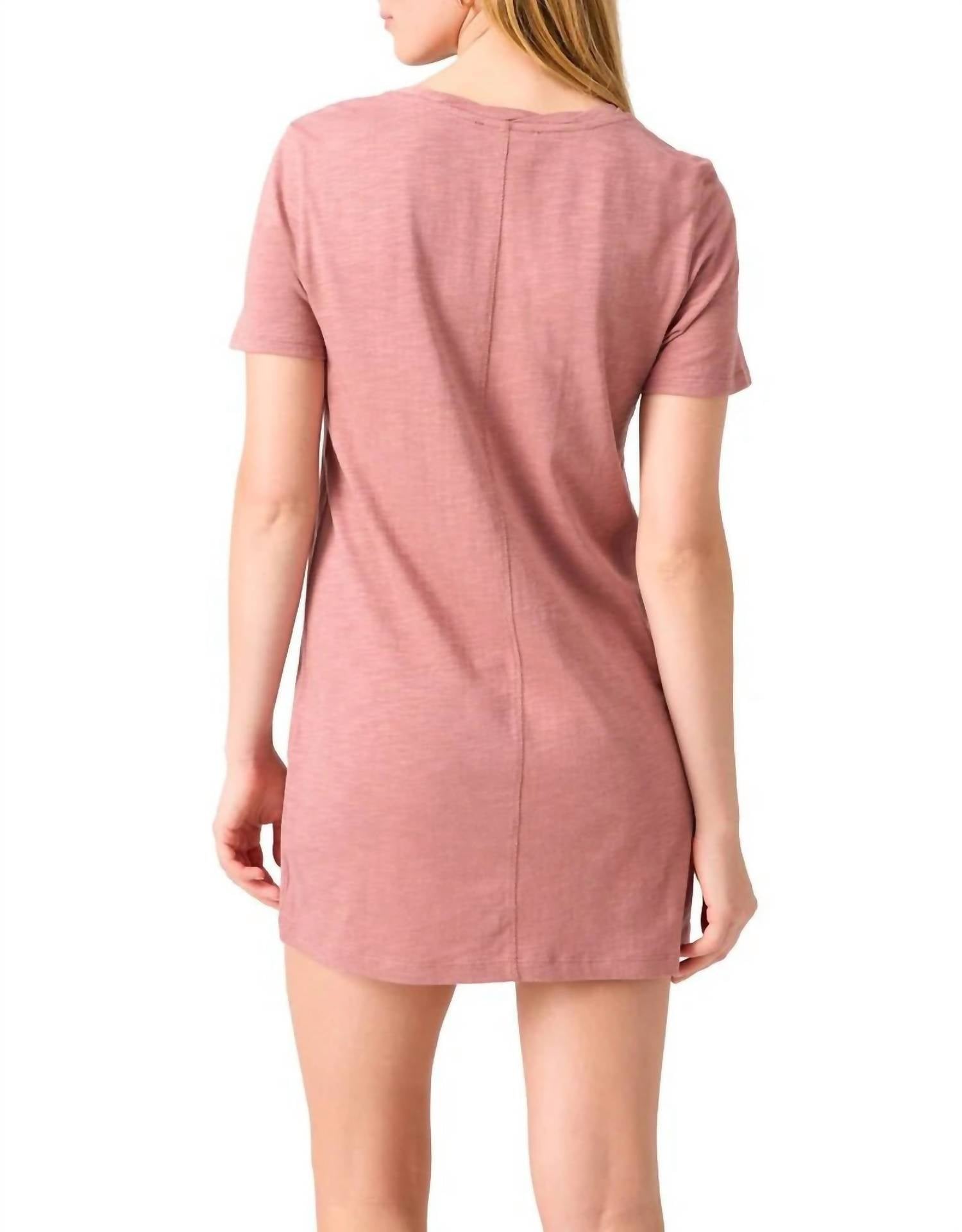 Introducing the Travelers T-shirt Dress by Sanctuary, a perfect fusion of style and comfort. This mini-length relaxed-fit shirt dress in a unique ash rose knit is crafted from 55% Organic Cotton and 45% Rayon, ensuring a soft and breathable wear. Designed with a crewneck and short sleeves, it features a solid pattern and a classic pull-on closure. For lasting quality, machine wash cold inside out and lay flat to dry.