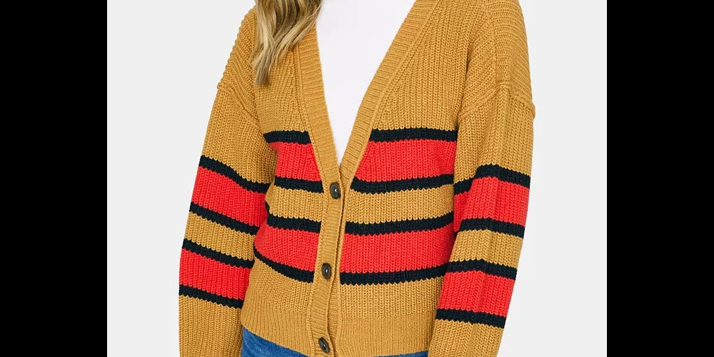 Approx. 21" long|Relaxed fit; hits at hip|V-neckline; button-front closures|Acrylic|Hand wash|Imported