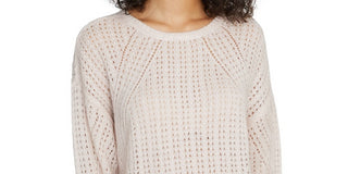 Sanctuary Women's Open Stitch Ribbed Trim Pullover Sweater Pink Size Medium