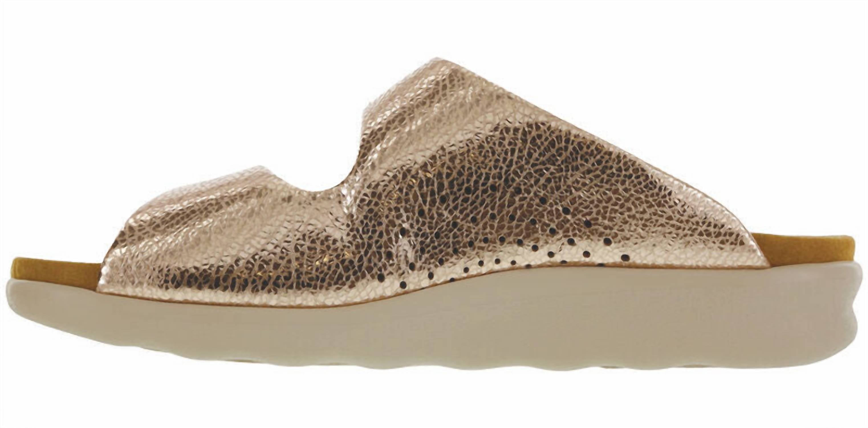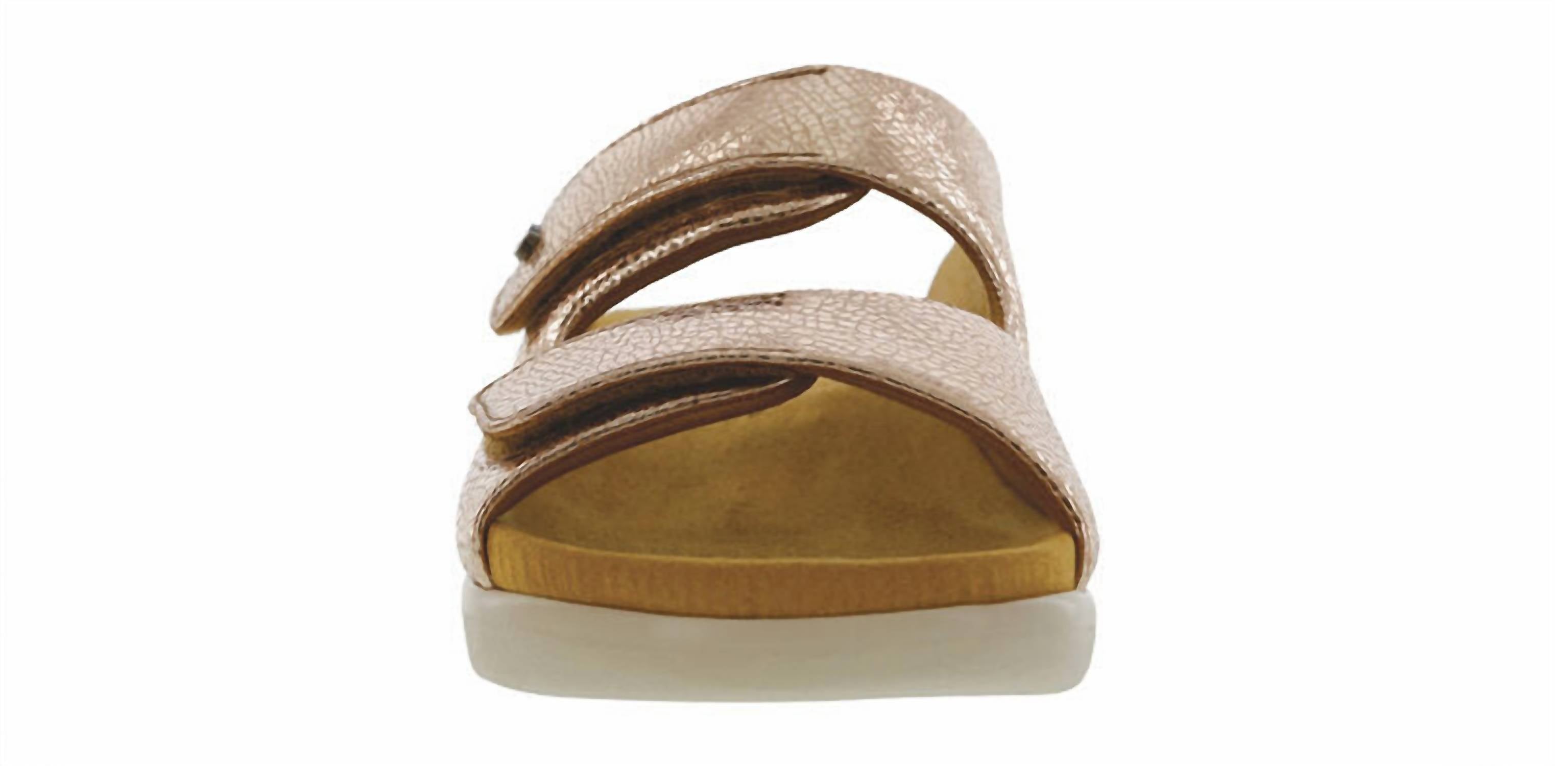 Classicly cute and all-day-wearable. We love this sandal. Experience unparalleled comfort with the Women's Cozy Sandals by SAS, a perfect blend of style and function. These sandals feature a genuine leather upper available in a range of colors and textures, complemented by a soft microfiber upper lining for a gentle touch. The adjustable hook and loop closure ensures a secure, custom fit, while the contoured polyurethane insole molds to the foot's natural curves, supported by TRIPAD® technology for optimal shock absorption. The cushion outsole crafted from superior polyurethane provides all-day comfort with a 1.125" heel height.