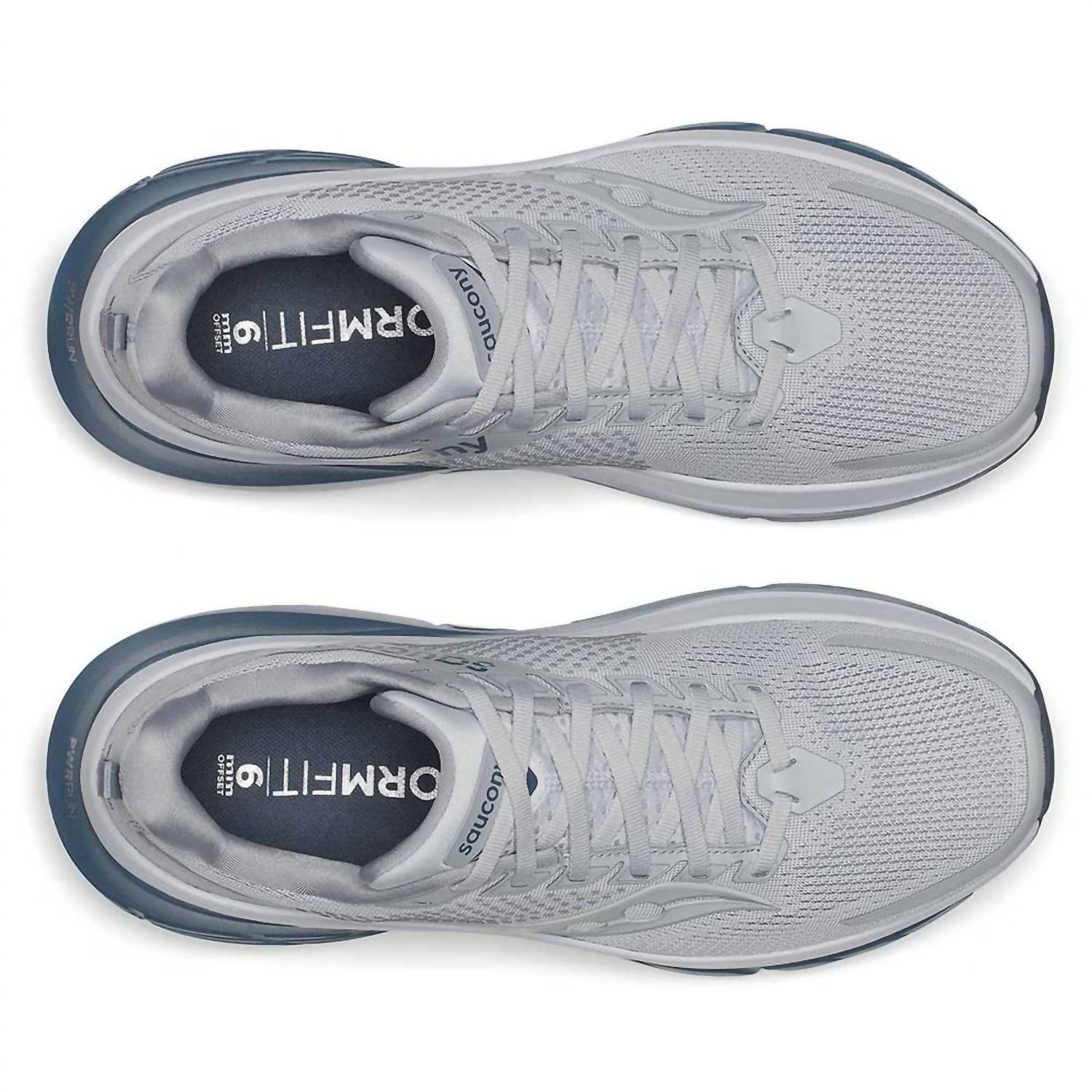 This high-cushion running shoe is designed for daily wear and long runs, offering advanced support through innovative stability features. A wider platform, raised sidewalls, and an asymmetric design work together to guide your foot naturally through each stride, helping reduce fatigue and minimize injury risk. With a sleek exterior and a plush, supportive interior, it delivers a smooth, stable ride that's perfect for both workouts and all-day comfort.