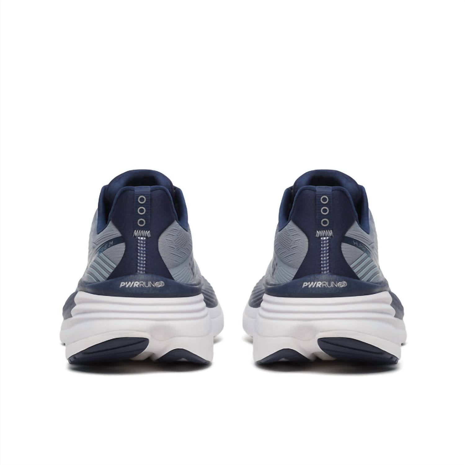 Introducing the Men's Hurricane 24 Running Shoe by SAUCONY, crafted for the ultimate athletic experience. This Flint/navy shoe features an almond toe shape and is ideal for fitness and workout occasions, embodying the athleisure trend for spring. Engineered with a groundbreaking dual-cushioning system, it combines the plush, energy-returning PWRRUN PB foam with a supportive PWRRUN foam frame for unmatched comfort. Embrace new-era geometry and CenterPath Technology for optimal stride protection.