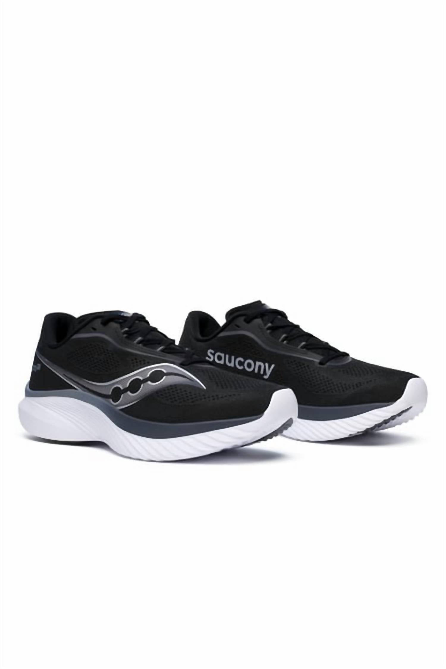 Experience the power of lightness with the Saucony Men's Kinvara 15 Running Shoes in sleek Black/White, designed for the athleisure trend. The seamless engineered mesh upper ensures breathability and distraction-free comfort, while the PWRRUN midsole provides responsive cushioning for an exceptional ground feel. With a 2mm reduced stack height, this shoe encourages a natural ride, perfect for competitive and neutral runners aiming for high speeds. These shoes feature a durable XT-900 carbon rubber outsole for reliable traction, ideal for fitness and workout occasions. Made for the spring season.