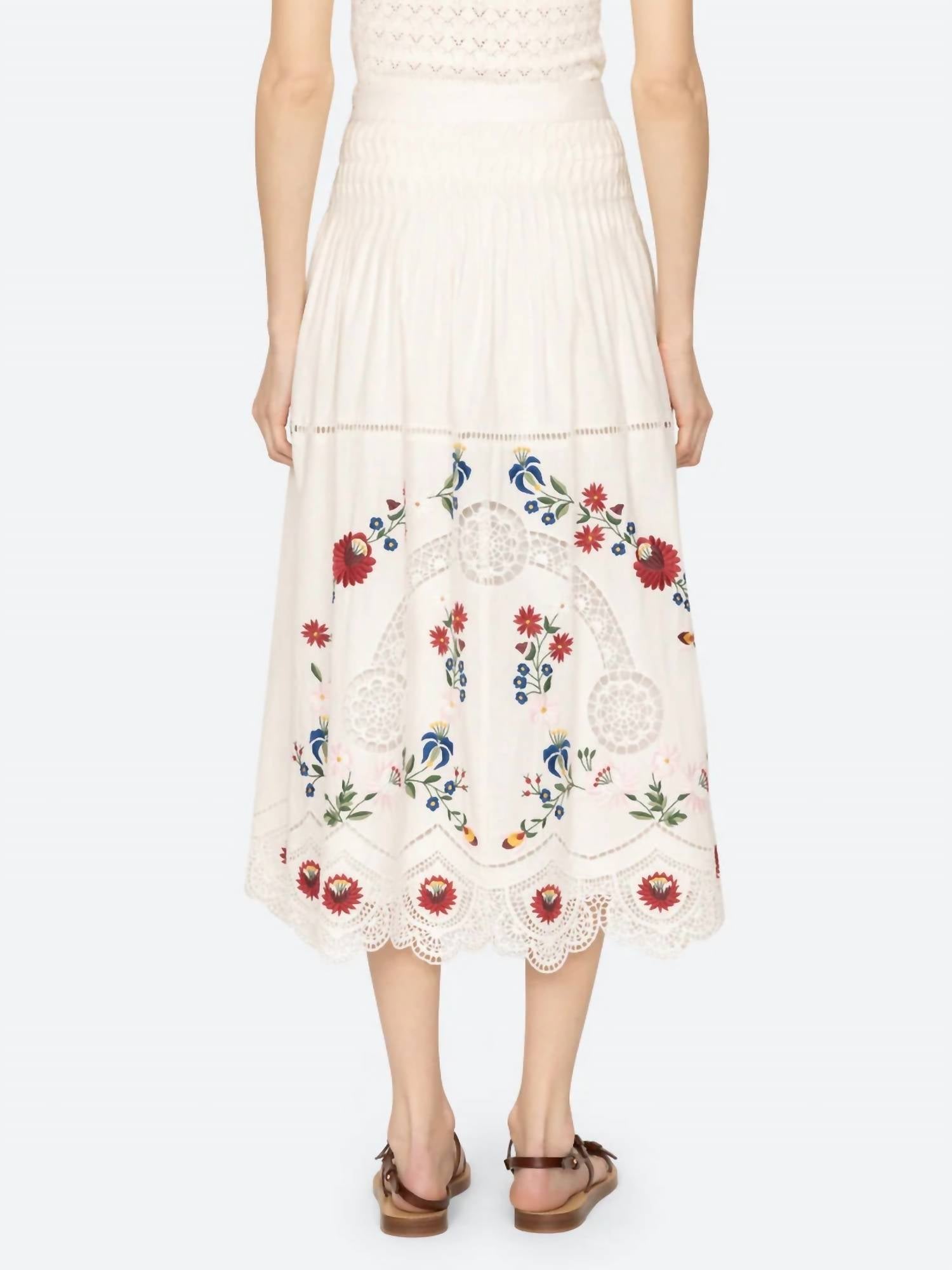 The midi length skirt is here to stay and we especially love this style. The Celia Embroidery Midi Skirt by SEA is a perfect blend of elegance and craftsmanship, ideal for your summer wardrobe. This cream, floral-patterned, midi-length skirt features a composition of 70% Cotton and 30% Linen, designed with a pull-on closure for ease. Embrace its boho chic style without compromising on practicality, as it requires simple machine washing and should be laid flat to dry. A timeless piece that embodies sophistication, perfect for vacation or any special occasion.