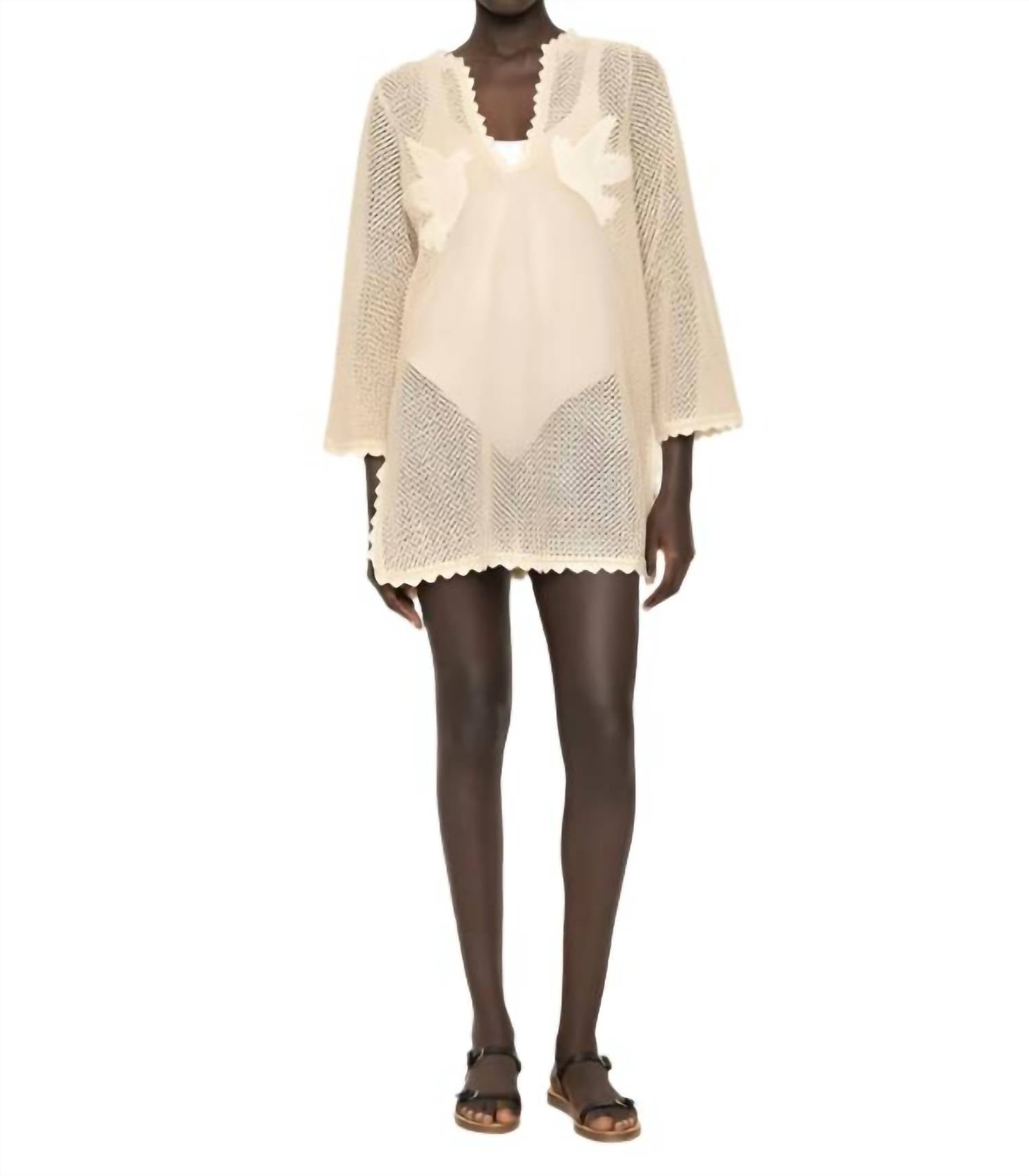 You're going to want to pack this for your next vacation! Introducing the Sally Crochet Coverup by SEA, a beautifully crafted piece in a warm tan hue. This exquisite coverup features intricate crochet bird motif and trim detailing, made with 100% cotton and decorated with 100% wool. Imported for exceptional quality, each piece is unique due to the hand crochet process. Perfect for adding a touch of elegance to your swimwear ensemble.