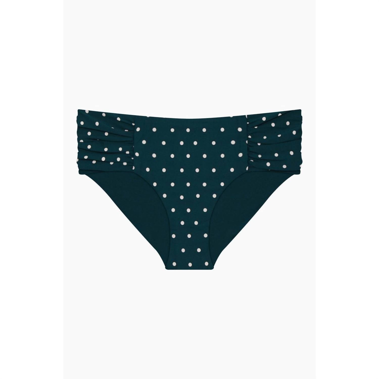 This cute and flattering swimsuit is perfect for making a splash at the pool, lounging on sun-kissed beaches, and staying stylish throughout the upcoming summer season. Introducing the Seafolly Wide Side Retro Bikini Bottom in Aralia Spot, featuring an elegant green stretch swim fabric adorned with flirty rose pink polka dots. Designed with mid-rise front and moderate backside coverage, it showcases your curves while ensuring comfort. Made from a Nylon/Spandex blend and finished with side ruching detail, it offers a flattering, hip-hugging look. Care instructions advise a cold gentle machine wash separately or hand wash with lukewarm water using a mild detergent, then dry in the shade.