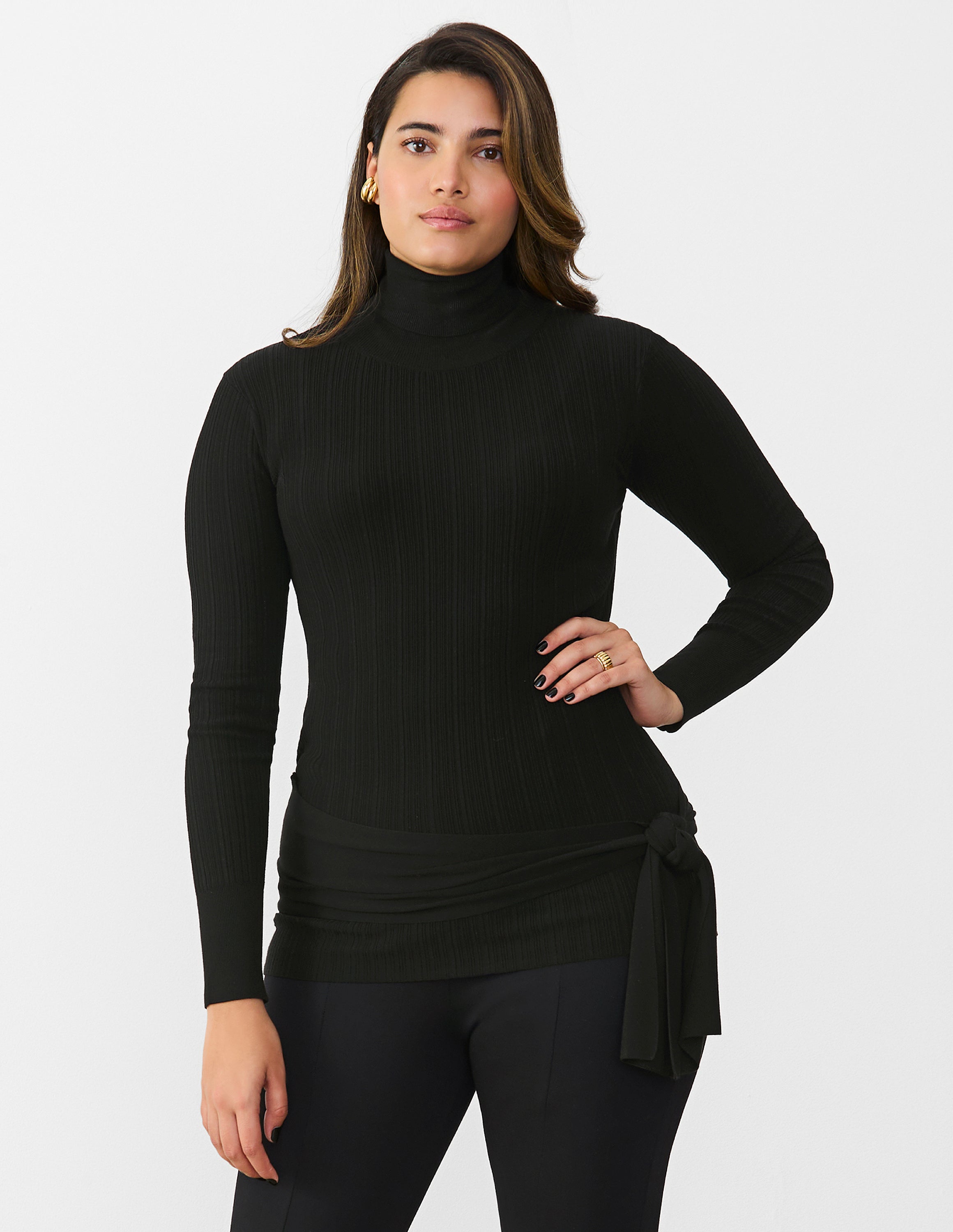 Enhance your everyday look with our turtleneck with waist tie. Knitted from a soft, lightweight yarn, this top offers all-day wearability and effortless style.