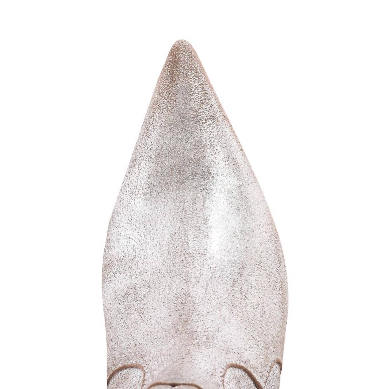 Say hello to the perfect, most versatile boot. The ankle height makes this style easily transition from day to night. Wear them with your favorite skinny jeans and tee for a more laid back look, or pair them with your favorite mini dress and jacket for a night out on the town. Meet the Women's Dallas Boot by Seychelles, a modern twist on the classic western style. Crafted in pewter distressed suede, these boots boast a pointed toe and sleek silhouette, enhanced by a kitten heel with a 2" height. The shaft measures 8" with a 10.5" circumference, ensuring a snug, true-to-size fit that effortlessly complements any outfit. A zipper closure offers easy access, perfect for the woman on the go.