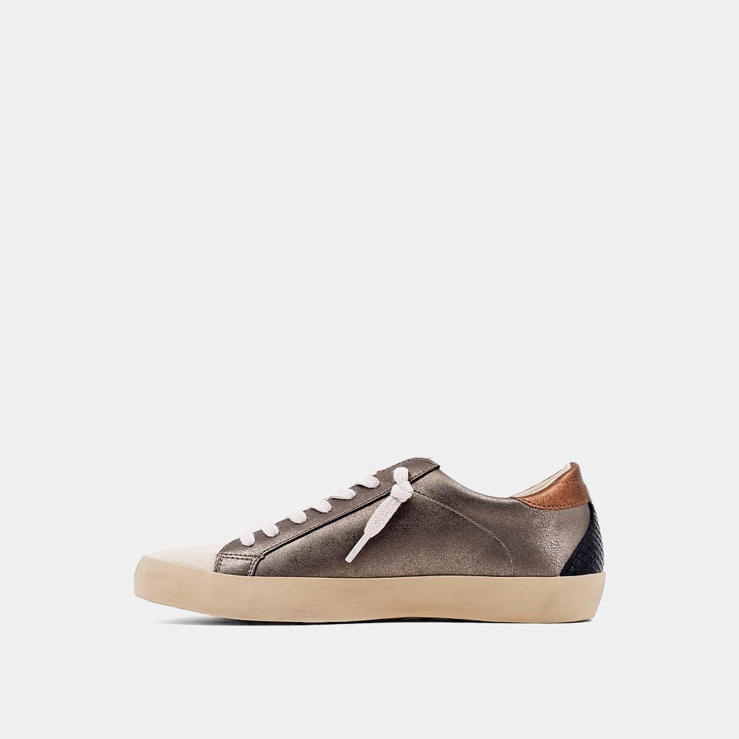 Cute, functional, and comfortable. These sneakers check all the boxes. Elevate your fall fashion with the Women's Paula Metal Low Top Sneakers by SHU SHOP, a perfect blend of style and comfort. These brown sneakers showcase a unique bronze tone, emphasizing the minimalist trend while adding an edge to your Thanksgiving dinner party ensemble. Made from premium leather, they feature a flat heel and medium width, ensuring a comfortable fit for all-day wear. Ideal for the spring season, they seamlessly blend into any wardrobe.