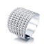 The banded design of the ring is also unique and adds an interesting twist to the traditional band design. The open space between the two sides of the band creates a modern and dynamic look, which is perfect for those who appreciate contemporary and innovative jewelry designs.