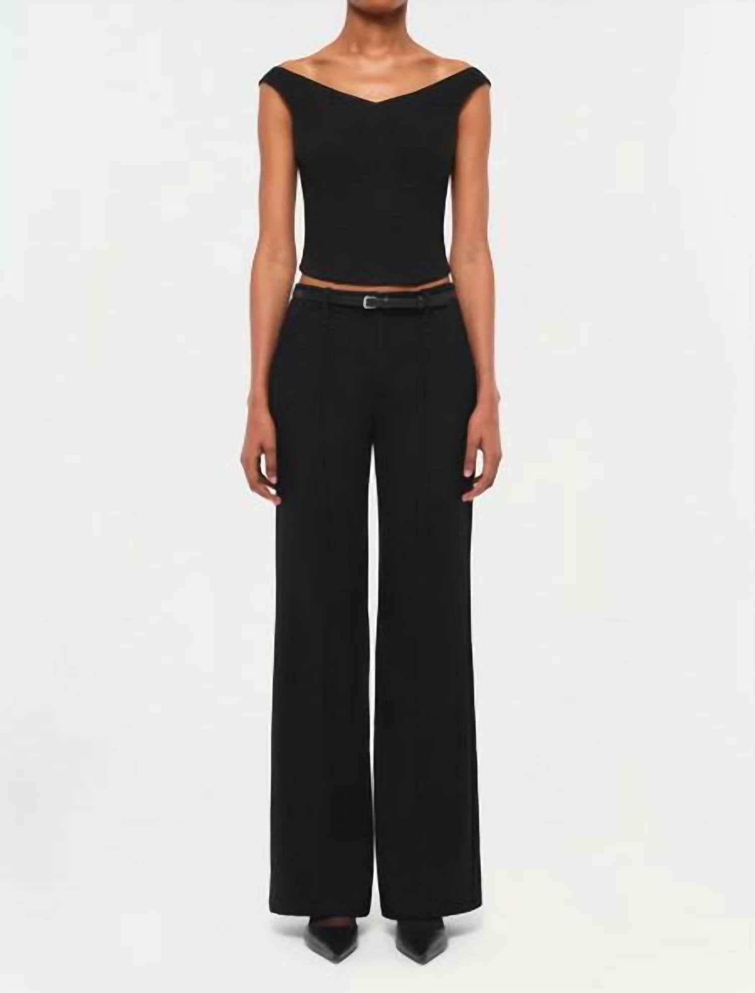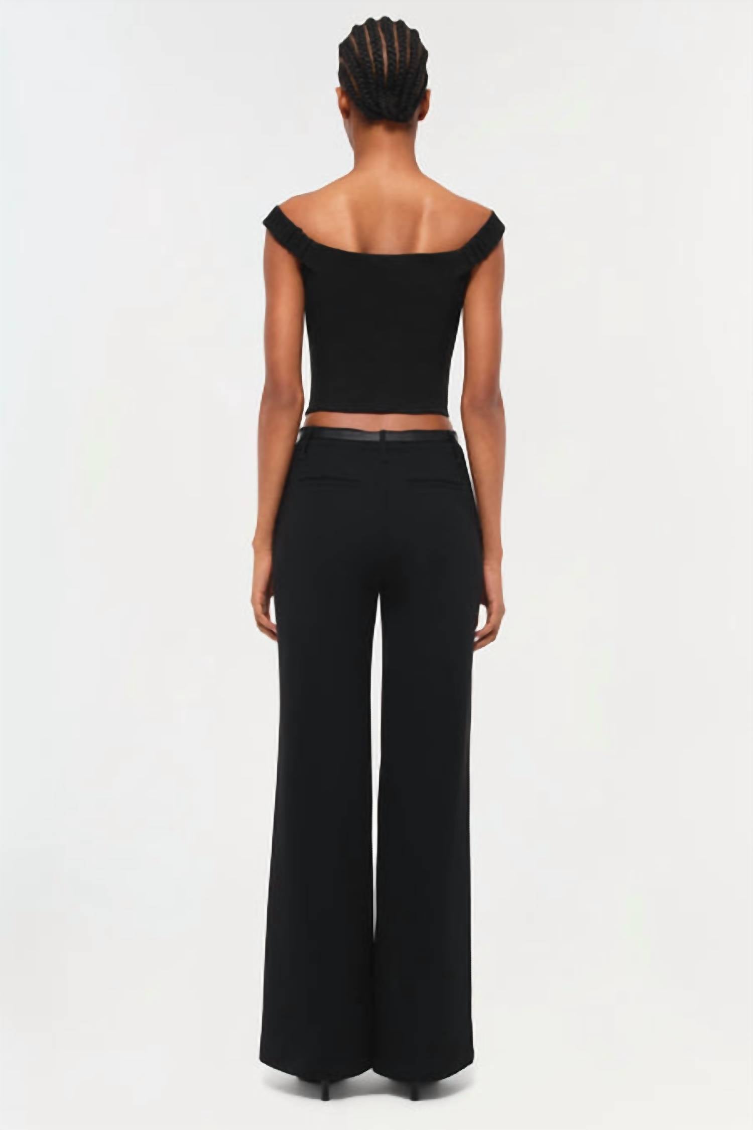 Enhance your style with the Ansel Flared Trouser by SIMKHAI, crafted for elegant versatility in a solid black hue. Featuring a high-waist and relaxed fit, these trousers are made of 55% Acetate and 45% Polyester with a 100% Polyester lining. Closure is secured with a zipper fly and clasp. Please note these trousers are dry clean only.