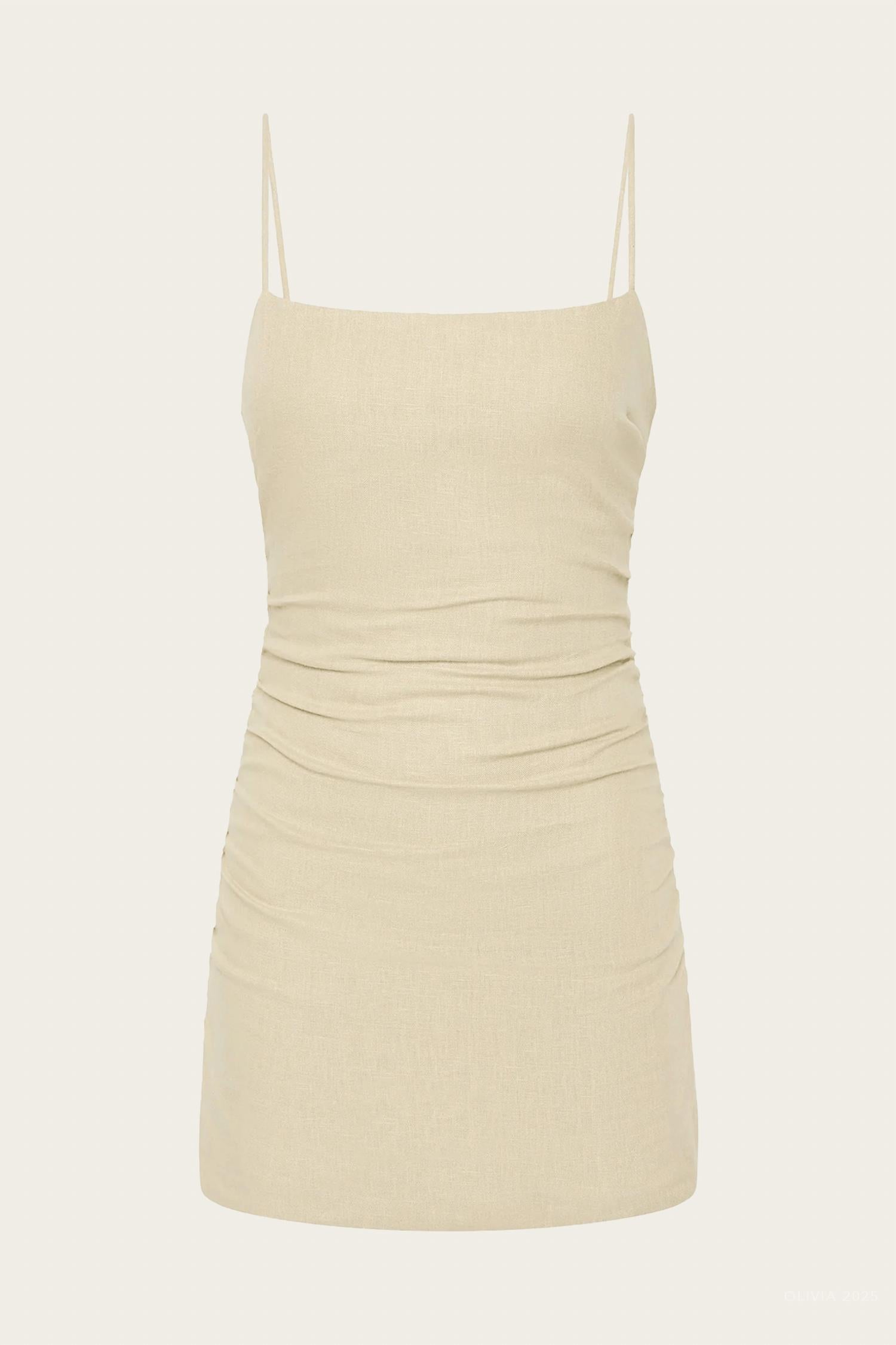 A short and breezy dress for those warmer days. Meet the Tamara Mini Dress by SIR., the epitome of minimalist elegance. Featuring spaghetti straps, this dress is crafted from 100% linen with a 100% cotton lining for ultimate comfort. Its sheath silhouette and sleek straight neckline are complemented by elegant tucks, creating a flattering fit. Additionally, the side invisible zipper ensures easy wear, and it comes in a sophisticated olive shade. Care for this imported piece with dry cleaning only, and enjoy its timeless design season after season.