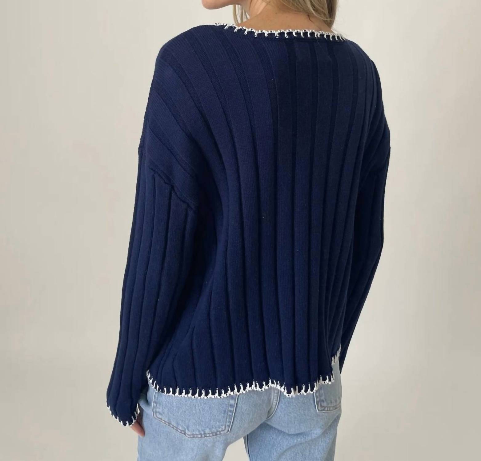 Experience the perfect blend of comfort and style with this trendy crew neck sweater, designed to effortlessly elevate your wardrobe. Pair it with your favorite denim and loafers for the perfect look. Introducing the Northport Stitch Seams Sweater by SIX/FIFTY, a minimalist staple for spring. This long sleeve, scoopneck sweater is made from 100% cotton, offering a cozy feel with exposed stitch seams and practical patch pockets. Designed in navy, it fits into the crew and scoop neck category and is ideal for vacation wear. Closure: Pull on.